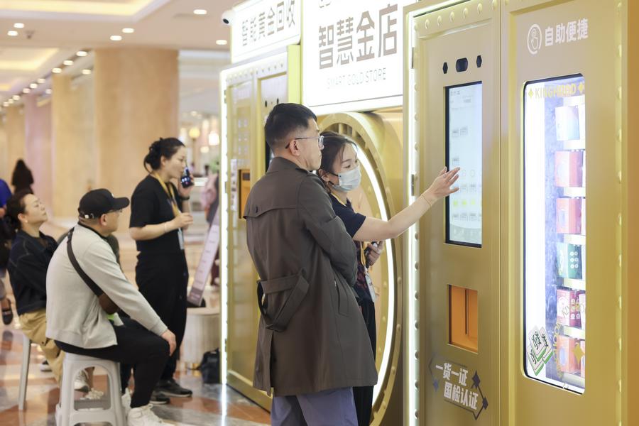 A citizen learns about a "smart gold store" at a shopping mall in Shanghai, east China, May 5, 2025. (Xinhua/Wang Xiang)