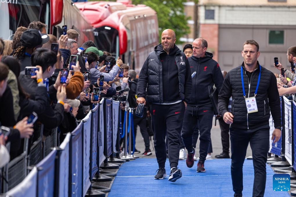 Liverpool's head coach Arne Slot arrives before the English Premier League match between Chelsea FC and Liverpool FC in London, Britain, May 4, 2025. (Xinhua)