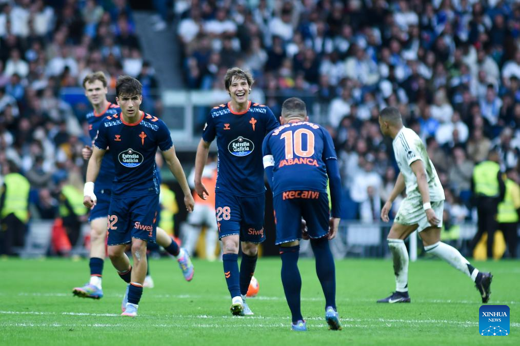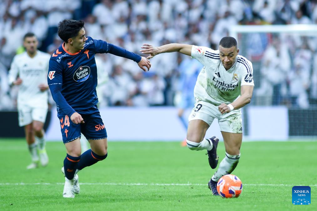 MADRID, May 4 (Xinhua) -- Kylian Mbappe and Arda Guler were Real Madrid's heroes as Carlo Ancelotti's side survived a second-half fightback to hold on for a 3-2 win at home to Celta Vigo.