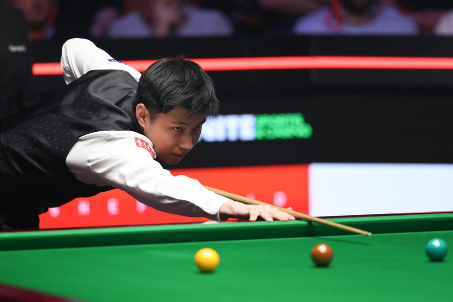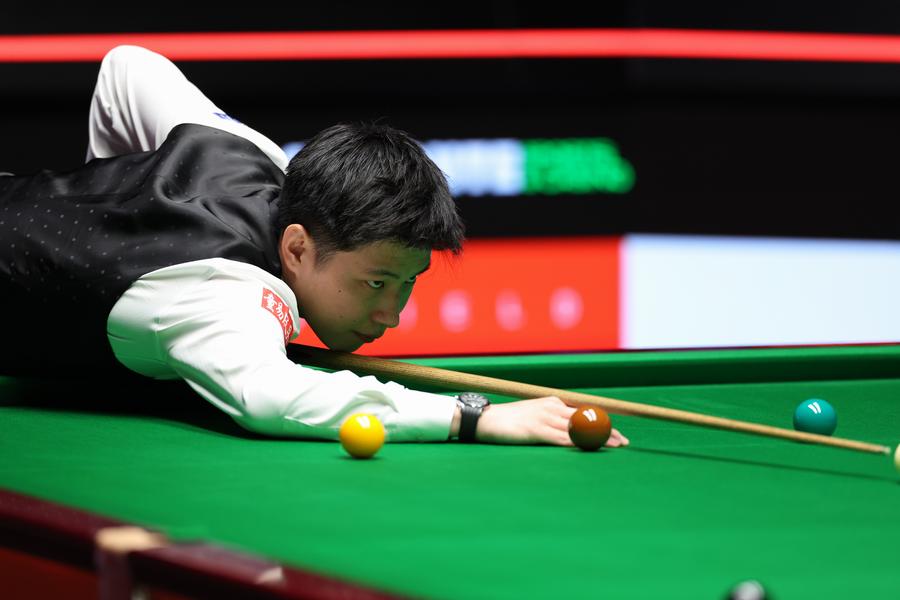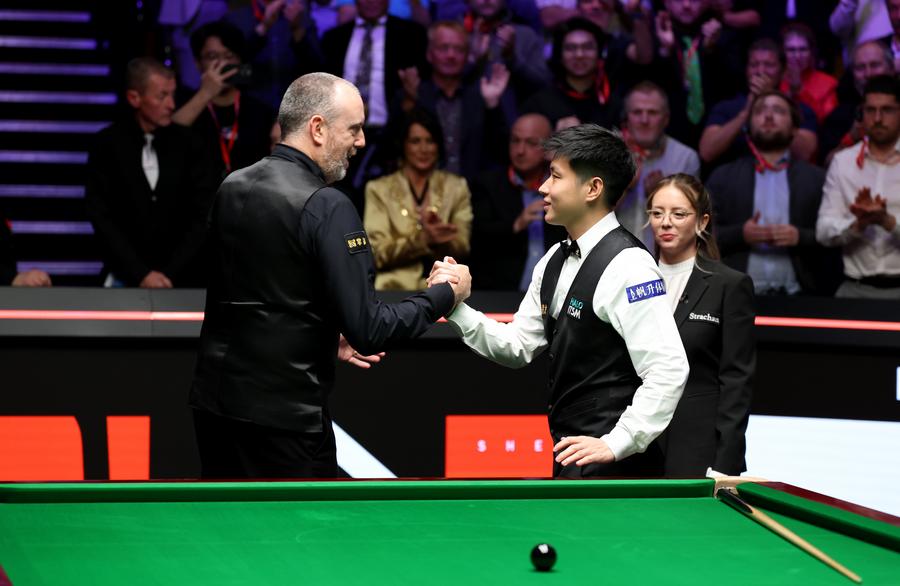 Zhao Xintong competes during the final between Zhao Xintong of China and Mark Williams of Wales at World Snooker Championship 2025 in Sheffield, Britain, May 5, 2025. Zhao Xintong competes during the final between Zhao Xintong of China and Mark Williams of Wales at World Snooker Championship 2025 in Sheffield, Britain, May 5, 2025. Zhao Xintong (front R) of China greets Mark Williams of Wales after their final at World Snooker Championship 2025 in Sheffield, Britain, May 5, 2025. Zhao Xintong celebrates with the trophy during the awarding ceremony after the final between Zhao Xintong of China and Mark Williams of Wales at World Snooker Championship 2025 in Sheffield, Britain, May 5, 2025.