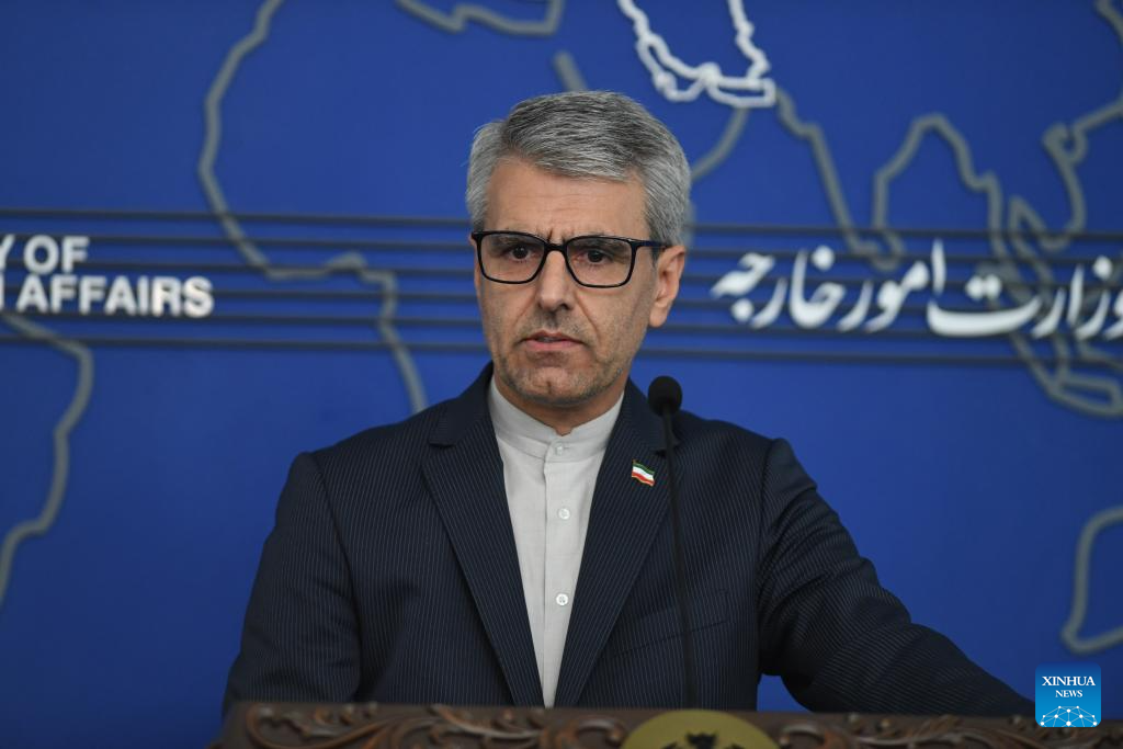 Iranian Foreign Ministry Spokesman Esmaeil Baghaei attends a press conference in Tehran, Iran, on May 5, 2025. Baghaei said on Monday that Iran will not seek to militarize its nuclear program. (Xinhua/Shadati)