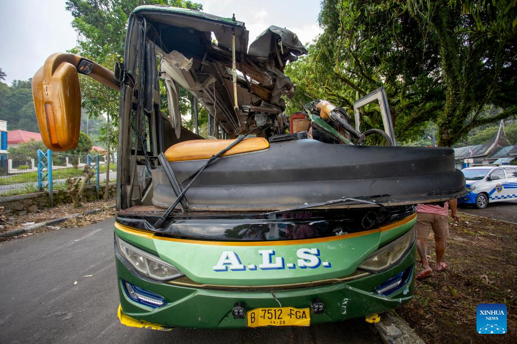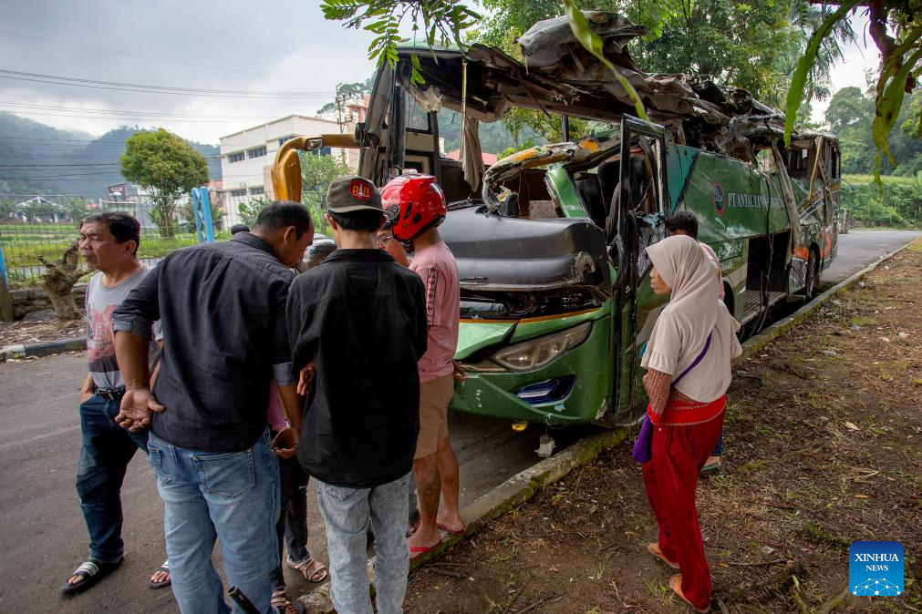JAKARTA, May 6 (Xinhua) -- At least 12 people were killed and more than five others injured in a single-vehicle bus accident in Padang Panjang city, West Sumatra province, Indonesia, on Tuesday morning, an official confirmed.