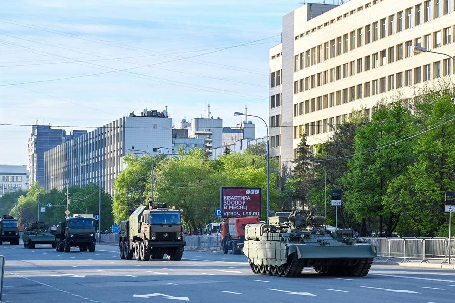 Soldiers prepare to attend a rehearsal for the Victory Day military parade, which marks the 80th anniversary of the Victory in the Soviet Union's Great Patriotic War, in Moscow, Russia, May 7, 2025. (Photo by Alexander Zemlianichenko Jr/Xinhua)Soldiers prepare to attend a rehearsal for the Victory Day military parade, which marks the 80th anniversary of the Victory in the Soviet Union's Great Patriotic War, in Moscow, Russia, May 7, 2025. (Photo by Alexander Zemlianichenko Jr/Xinhua)Soldiers prepare to attend a rehearsal for the Victory Day military parade, which marks the 80th anniversary of the Victory in the Soviet Union's Great Patriotic War, in Moscow, Russia, May 7, 2025. (Photo by Alexander Zemlianichenko Jr/Xinhua)Soldiers prepare to attend a rehearsal for the Victory Day military parade, which marks the 80th anniversary of the Victory in the Soviet Union's Great Patriotic War, in Moscow, Russia, May 7, 2025. (Photo by Alexander Zemlianichenko Jr/Xinhua)Aircraft fly in formation during a rehearsal for the Victory Day military parade, which marks the 80th anniversary of the Victory in the Soviet Union's Great Patriotic War, in Moscow, Russia, May 7, 2025. (Photo by Alexander Zemlianichenko Jr/Xinhua)Aircraft fly in formation during a rehearsal for the Victory Day military parade, which marks the 80th anniversary of the Victory in the Soviet Union's Great Patriotic War, in Moscow, Russia, May 7, 2025. (Photo by Alexander Zemlianichenko Jr/Xinhua)Aircraft fly in formation during a rehearsal for the Victory Day military parade, which marks the 80th anniversary of the Victory in the Soviet Union's Great Patriotic War, in Moscow, Russia, May 7, 2025. (Photo by Alexander Zemlianichenko Jr/Xinhua)Soldiers prepare to attend a rehearsal for the Victory Day military parade, which marks the 80th anniversary of the Victory in the Soviet Union's Great Patriotic War, in Moscow, Russia, May 7, 2025. (Photo by Alexander Zemlianichenko Jr/Xinhua)Vehicles drive through the downtown to attend a rehearsal for the Victory Day military parade, which marks the 80th anniversary of the Victory in the Soviet Union's Great Patriotic War, in Moscow, Russia, May 7, 2025. (Xinhua/Cao Yang)Vehicles drive through the downtown to attend a rehearsal for the Victory Day military parade, which marks the 80th anniversary of the Victory in the Soviet Union's Great Patriotic War, in Moscow, Russia, May 7, 2025. (Xinhua/Cao Yang)Vehicles drive through the downtown to attend a rehearsal for the Victory Day military parade, which marks the 80th anniversary of the Victory in the Soviet Union's Great Patriotic War, in Moscow, Russia, May 7, 2025. (Xinhua/Cao Yang)■