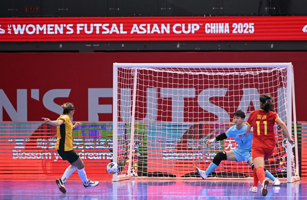 Australia's Gisella Pipino (R) vies with China's Su Jiahong during the group A match between China and Australia of the AFC Women's Futsal Asian Cup in Hohhot, north China's Inner Mongolia Autonomous Region, on May 6, 2025. (Xinhua/Bei He)Australia's Claudia Fruscalzo (L) and China's Xiong Jing competes during the group A match between China and Australia of the AFC Women's Futsal Asian Cup in Hohhot, north China's Inner Mongolia Autonomous Region, on May 6, 2025. (Xinhua/Bei He)Australia's Alexia Karrys-Stahl (L) scores during the group A match between China and Australia of the AFC Women's Futsal Asian Cup in Hohhot, north China's Inner Mongolia Autonomous Region, on May 6, 2025. (Xinhua/Bei He)Australia's Claudia Fruscalzo (back) shoots during the group A match between China and Australia of the AFC Women's Futsal Asian Cup in Hohhot, north China's Inner Mongolia Autonomous Region, on May 6, 2025. (Xinhua/Bei He)Players of both sides greet each other before the group A match between Uzbekistan and Chinese Taipei of the AFC Women's Futsal Asian Cup in Hohhot, north China's Inner Mongolia Autonomous Region, on May 6, 2025. (Xinhua/Bei He)Tsou Hsin-Ni of Chinese Taipei competes during the group A match between Uzbekistan and Chinese Taipei of the AFC Women's Futsal Asian Cup in Hohhot, north China's Inner Mongolia Autonomous Region, on May 6, 2025. (Xinhua/Bei He)Liu Wen Ling (C) of Chinese Taipei competes during the group A match between Uzbekistan and Chinese Taipei of the AFC Women's Futsal Asian Cup in Hohhot, north China's Inner Mongolia Autonomous Region, on May 6, 2025. (Xinhua/Bei He)