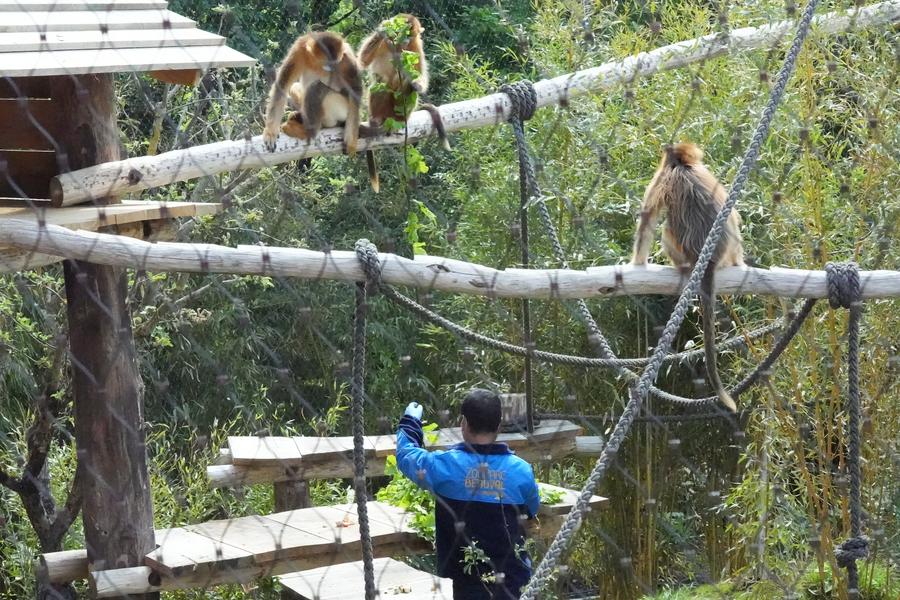 SAINT-AIGNAN, France, May 7 (Xinhua) -- Three golden monkeys from China made their public debut on Wednesday at the ZooPark of Beauval in central France, marking the species' first journey outside Asia.