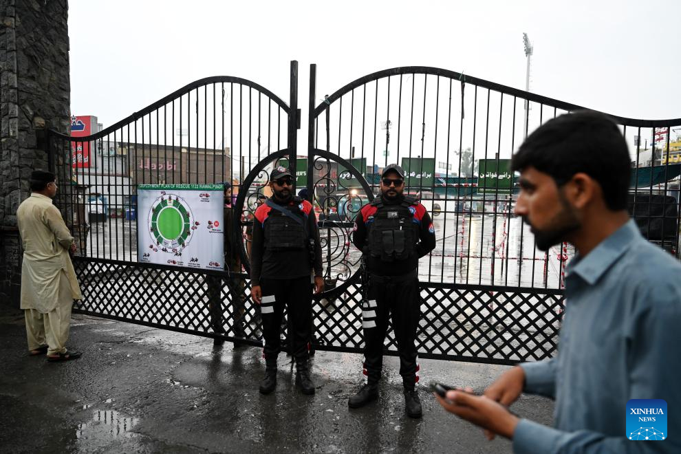 Security officials cordon off the area near an Indian drone strike site in Rawalpindi, Pakistan on May 8, 2025. At least one civilian was killed and five others, including four military personnel, were injured in a series of drone strikes by India targeting multiple locations in Pakistan since the early hours of Thursday, the Pakistani military said Thursday. In a statement, the Inter-Services Public Relations (ISPR), the media wing of the Pakistani army, said 25 Harop drones had been shot down using a combination of electronic countermeasures and kinetic fire since the escalation began. (Xinhua/Ahmad Kamal)