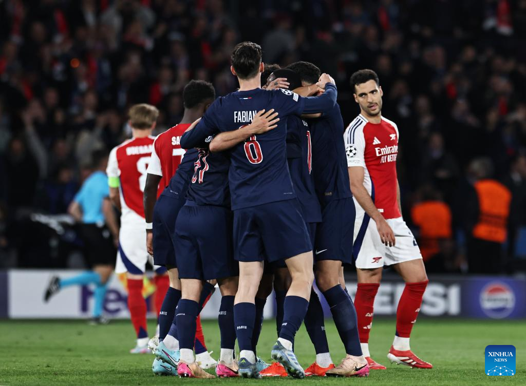 PARIS, May 7 (Xinhua) -- Paris Saint-Germain will play Inter Milan in the UEFA Champions League final after a 2-1 win at home to Arsenal on Wednesday saw them emerge victorious 3-1 on aggregate.