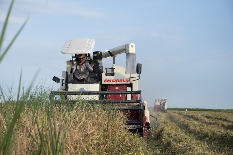 MAPUTO, May 9 (Xinhua) -- As the morning sun glows over the banks of the Limpopo River in Gaza Province, southern Mozambique, golden rice ears sway gently in the breeze. Among the bending stalks heavy with grain, Gerson Joao, a farmer, is busy working.
