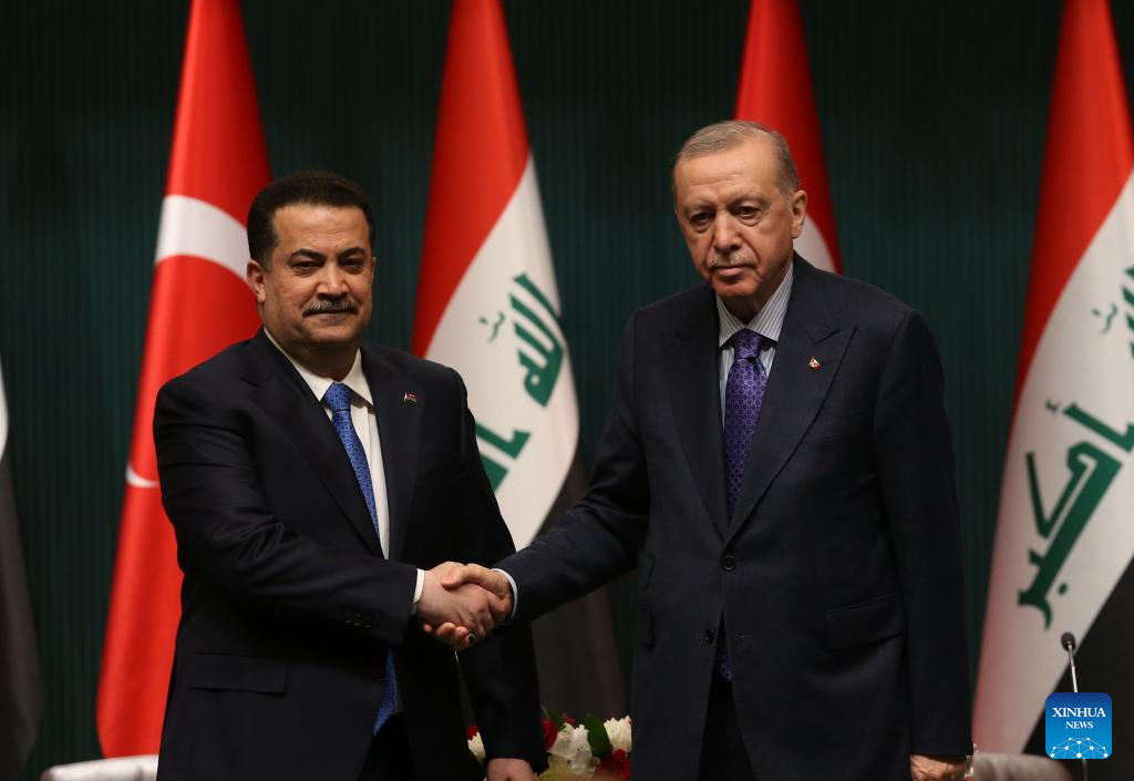 ANKARA, May 8 (Xinhua) -- Turkish President Recep Tayyip Erdogan and visiting Iraqi Prime Minister Mohammed Shia' al-Sudani vowed here on Thursday to jointly push for the implementation of the regional transportation project Development Road.