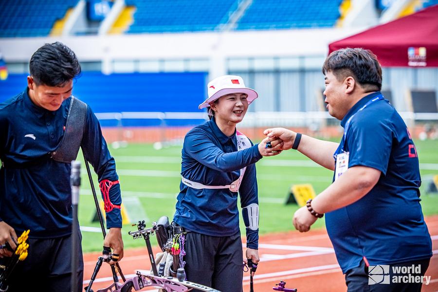 Bolstered by fervent home support, China's Wang Yan and Li Jiaman split the first two sets (37-37, 38-38) with Türkiye's reigning world champion Mete Gazoz and partner Dünya Yenihayat. The Chinese duo clinched the third set 39-37 for a 4-2 lead before sealing victory with a 37-37 tie in the fourth.