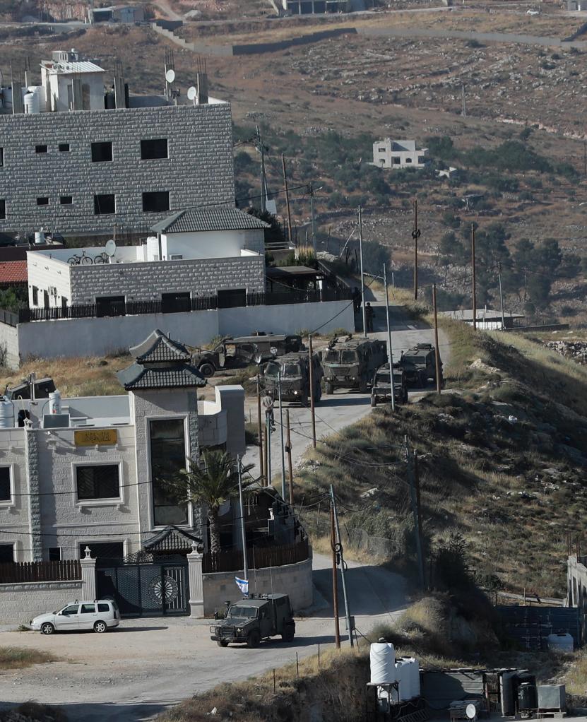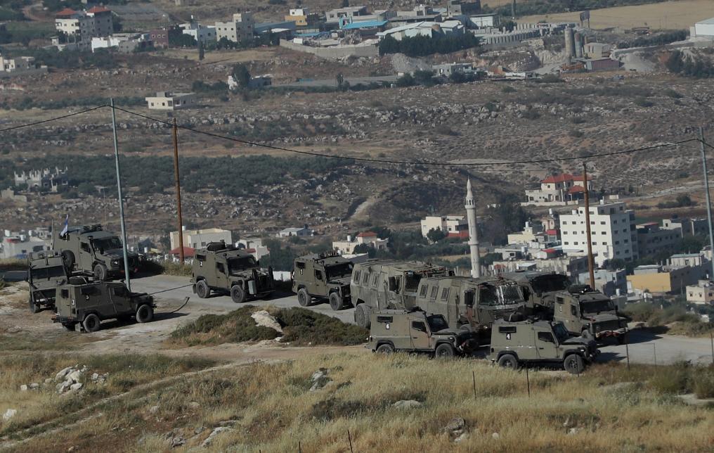 Israeli military vehicles are seen during an army raid in Nablus, the northern West Bank, on May 9, 2025. Israeli fighters on Friday killed the head of the Islamic Jihad movement in Jenin, northern West Bank, the Israel Defense Forces (IDF) and Israel Police said in a joint statement. The statement added that he was located and killed in Nablus city in a joint operation by the IDF, Israel Police's National Counter Terror Unit, and the Israel Security Agency, or the Shin Bet. (Photo by Ayman Nobani/Xinhua)