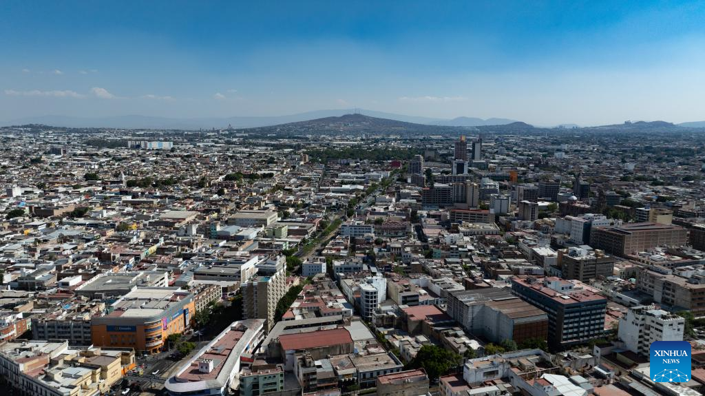This aerial drone photo taken on May 8, 2025 shows a city view of Guadalajara, Jalisco, Mexico. Guadalajara, Mexico's second-largest city, is a key economic hub and preserves rich cultural heritages. (Xinhua/Li Mengxin)