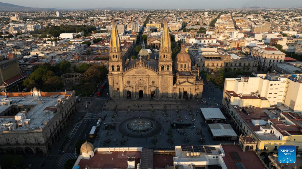 This aerial drone photo taken on May 8, 2025 shows the historic center of Guadalajara, Jalisco, Mexico. Guadalajara, Mexico's second-largest city, is a key economic hub and preserves rich cultural heritages. (Xinhua/Li Mengxin)