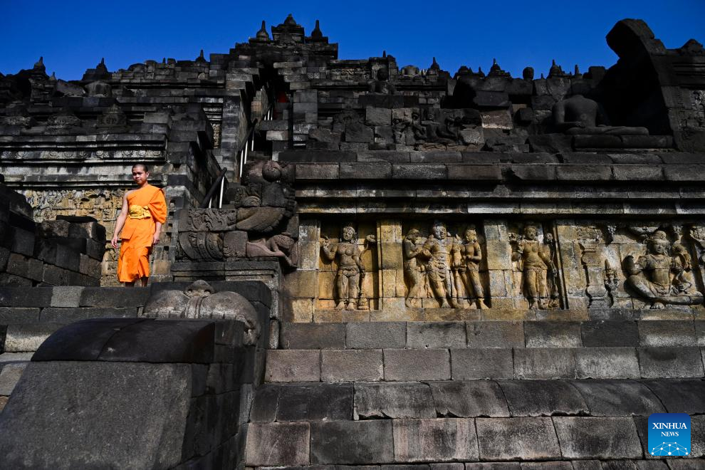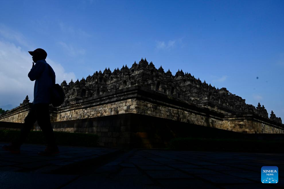 People visit the Borobudur Temple, a UNESCO-listed world heritage site, in Magelang, Central Java, Indonesia, May 10, 2025. (Xinhua/Zulkarnain)
