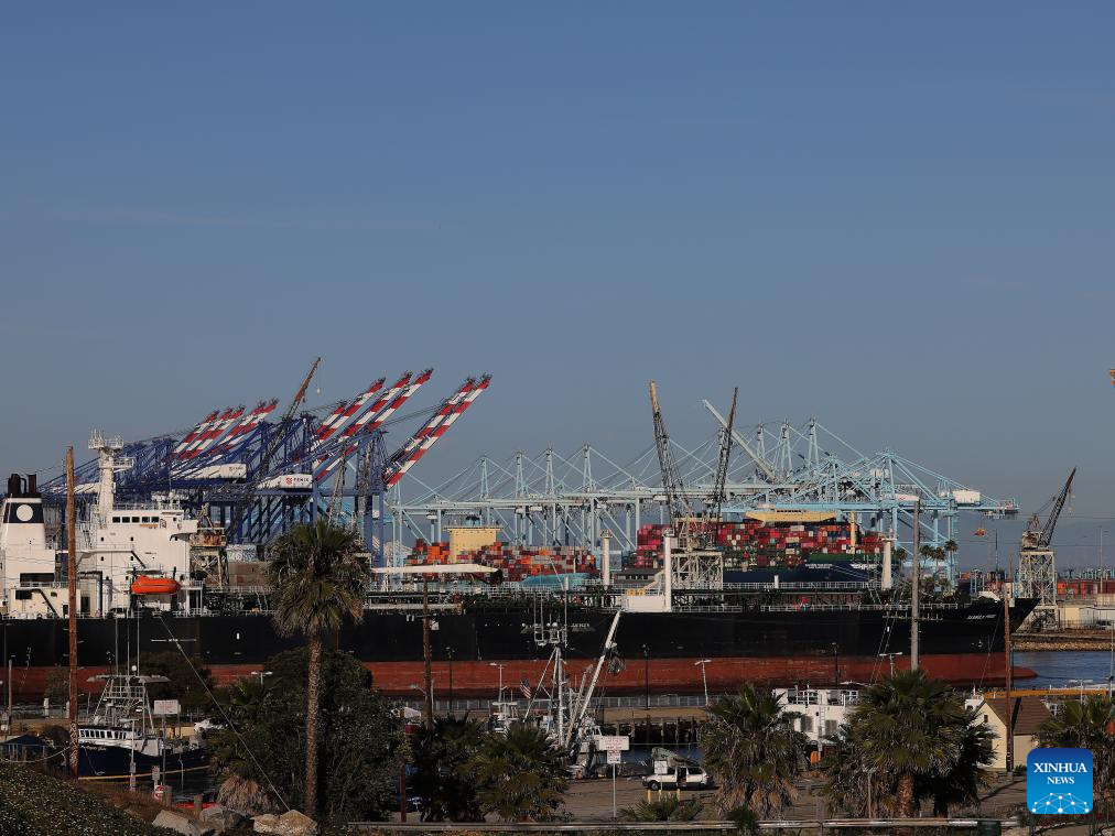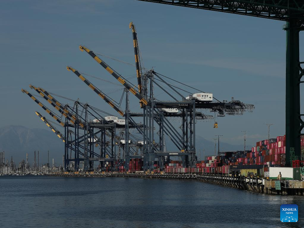 This photo taken on May 10, 2025 shows a view of the Port of Los Angeles in California, the United States. In a recent advertisement, California Governor Gavin Newsom warned the American public of the "real" and "serious" consequences of recent high tariffs, describing the situation as a "code red" economic emergency. (Photo by Qiu Chen/Xinhua)