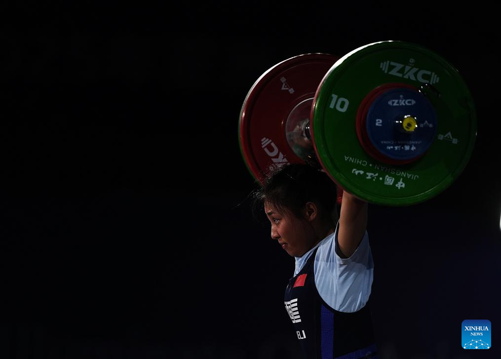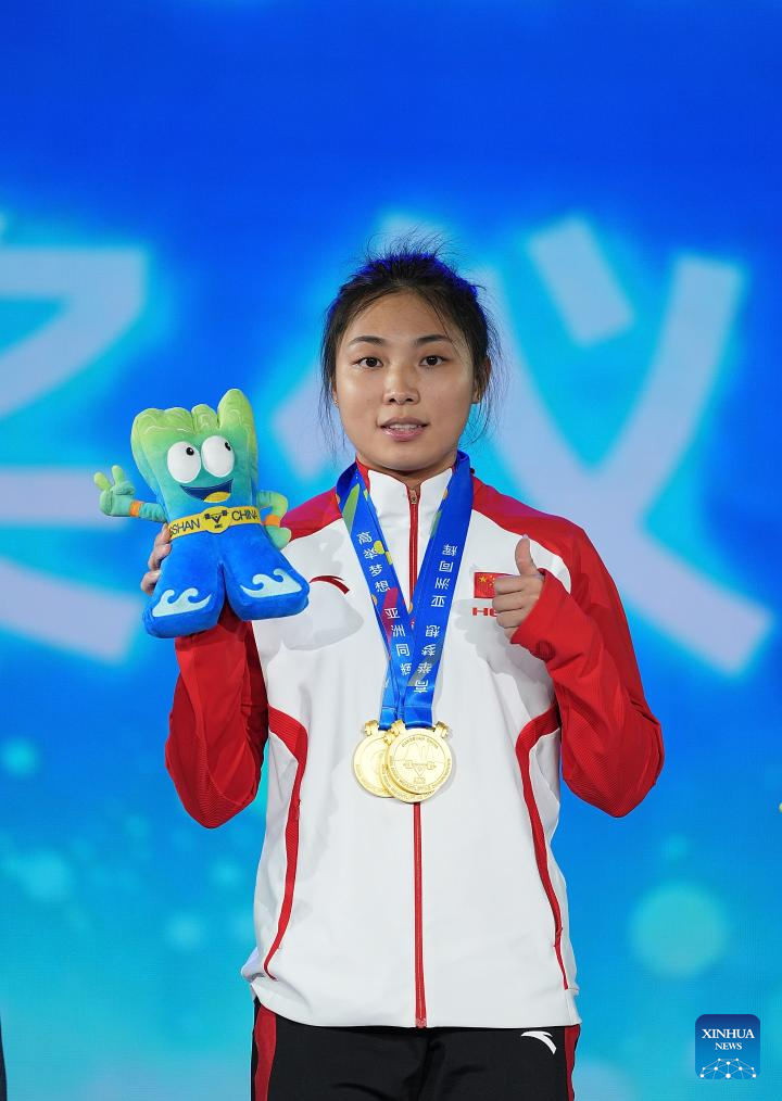 HANGZHOU, China, May 10 (Xinhua) -- China's Zhang Haiqin dominated the women's 55kg category, sweeping 3 golds and breaking the world junior record at the 2025 Asian Weightlifting Championships in Jiangshan, east China's Zhejiang Province, on Saturday.