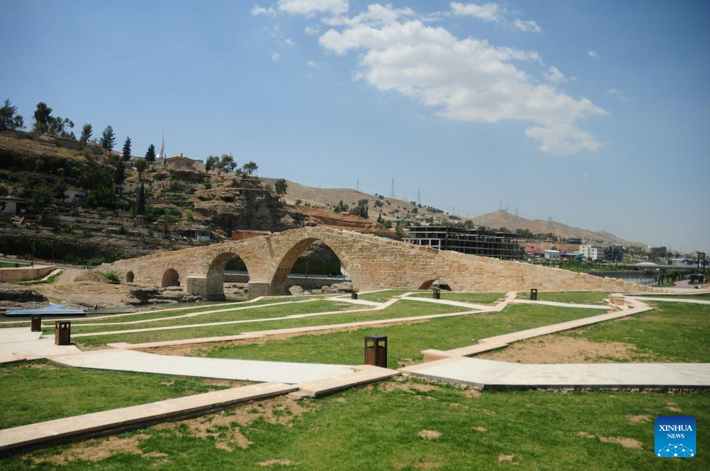 This photo shows a view of the ancient Dalal Bridge in Dohuk province, Iraq, May 10, 2025. The construction of Dalal Bridge dates back to the period of the Byzantine Empire. (Xinhua/Duan Minfu)