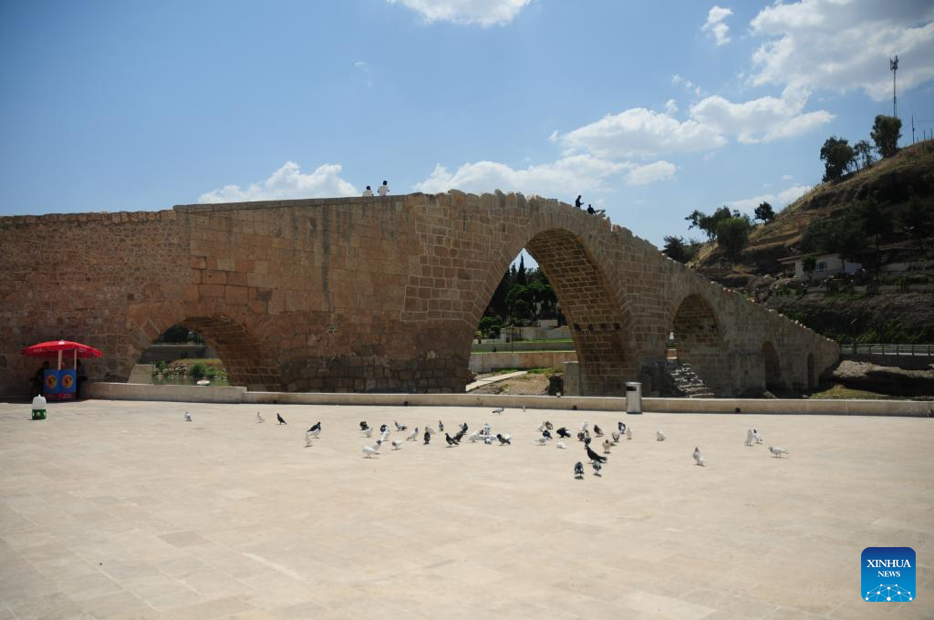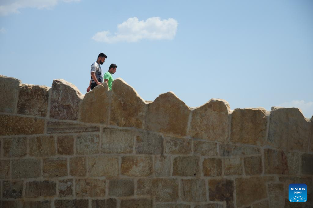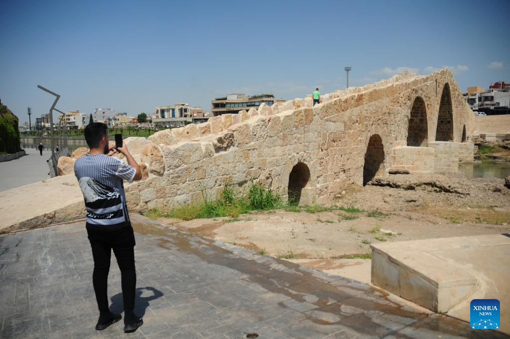 People walk on the ancient Dalal Bridge in Dohuk province, Iraq, May 10, 2025. The construction of Dalal Bridge dates back to the period of the Byzantine Empire. (Xinhua/Duan Minfu)