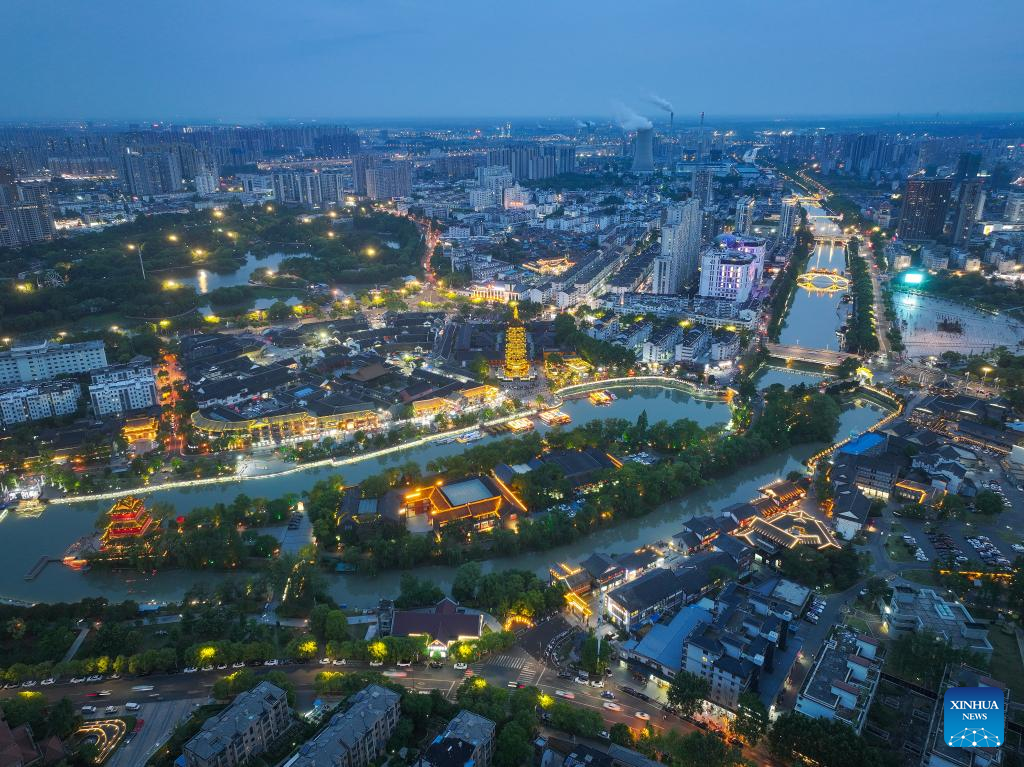 An aerial drone photo taken on May 10, 2025 shows a section of the cultural corridor in Huai'an, east China's Jiangsu Province.