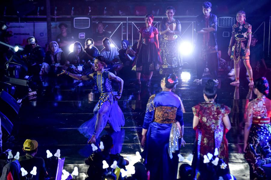 Dancers perform during the Indonesia World Dance Festival (IWDF) 2025 at Bulungan Youth Center in Jakarta, Indonesia, May 11, 2025. (Xinhua/Agung Kuncahya B.)