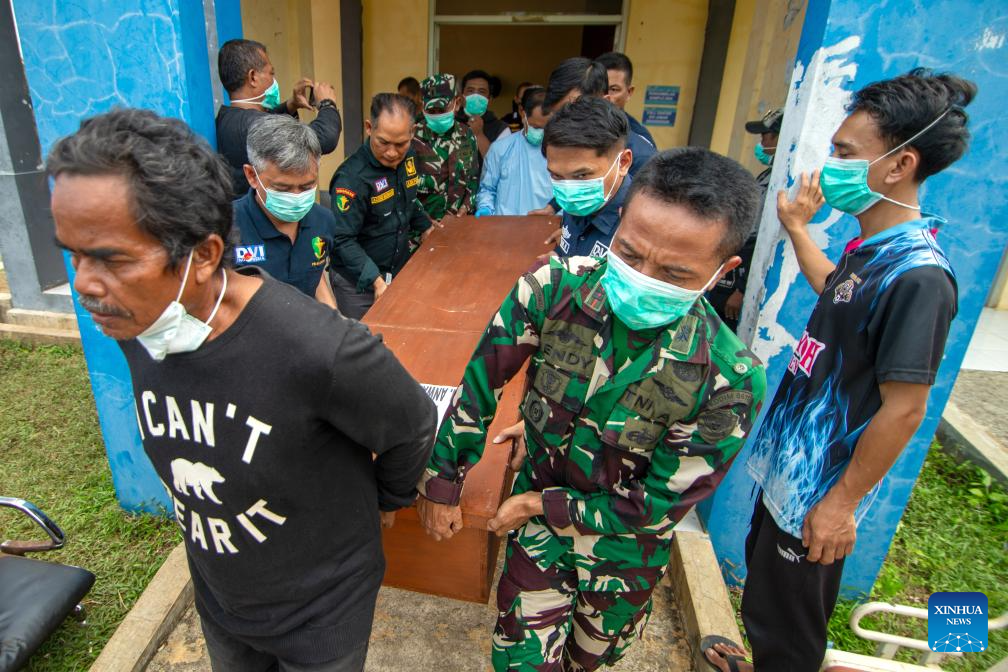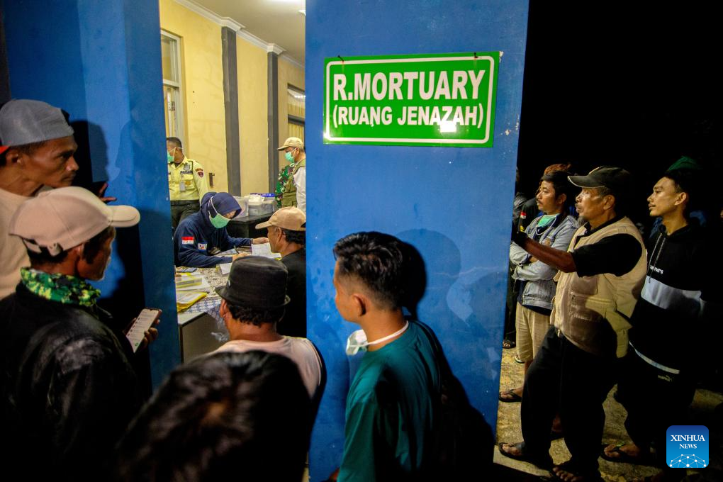 This photo taken with a mobile phone shows officers collecting data of victims of ammunition disposal blast at a hospital in Garut Regency, West Java Province, Indonesia, May 12, 2025. At least 13 people were killed when the Indonesian army destroyed expired ammunition in West Java province on Monday, a military officer said. (West Java Regional Police Station/Handout via Xinhua)