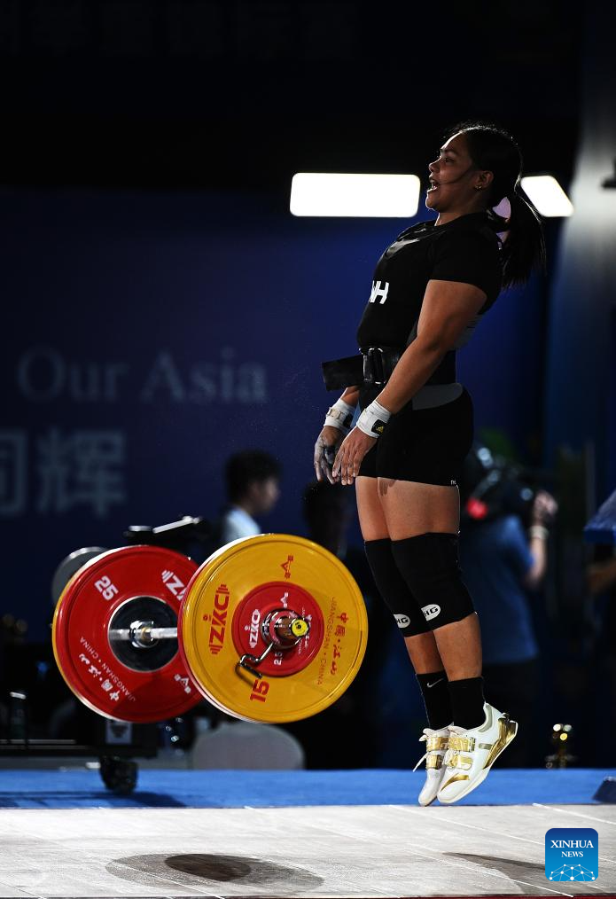 Pham Thi Hong Thanh of Vietnam competes during the women's 71kg competition at 2025 Asian Weightlifting Championships in Jiangshan, east China's Zhejiang Province, May 13, 2025. (Xinhua/Hou Zhaokang)