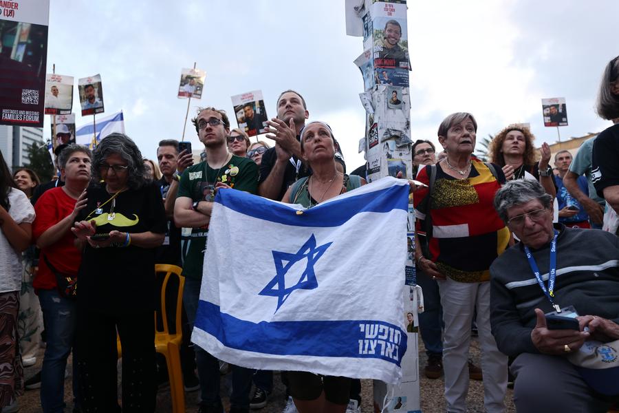 In Hostages Square, a public plaza located in front of the Tel Aviv Museum of Art and renamed following the Hamas-led Oct. 7, 2023 attack, hundreds gathered to watch Alexander's return on large screens. They held up photos of the freed hostage and signs reading: "Only an end to the war in Gaza would secure the release of the remaining hostages."