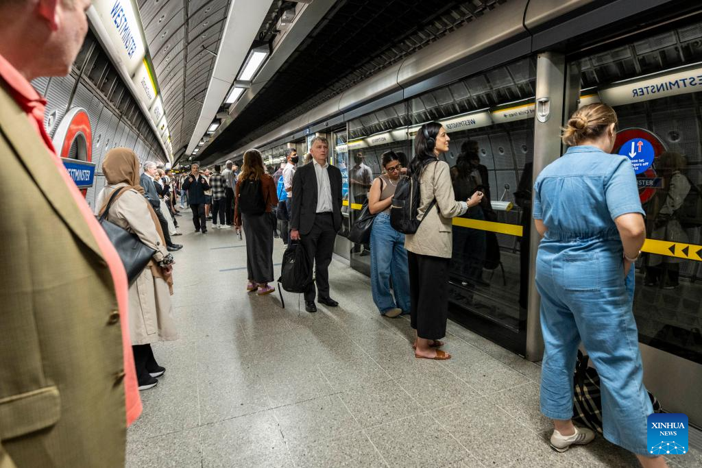 Commuters wait for a delayed Jubilee line tube at Westminster station in London, Britain, on May 12, 2025. A power outage struck the London Underground, causing widespread travel disruptions across the capital on Monday afternoon, Transport for London (TfL) confirmed. (Photo by Stephen Chung/Xinhua)