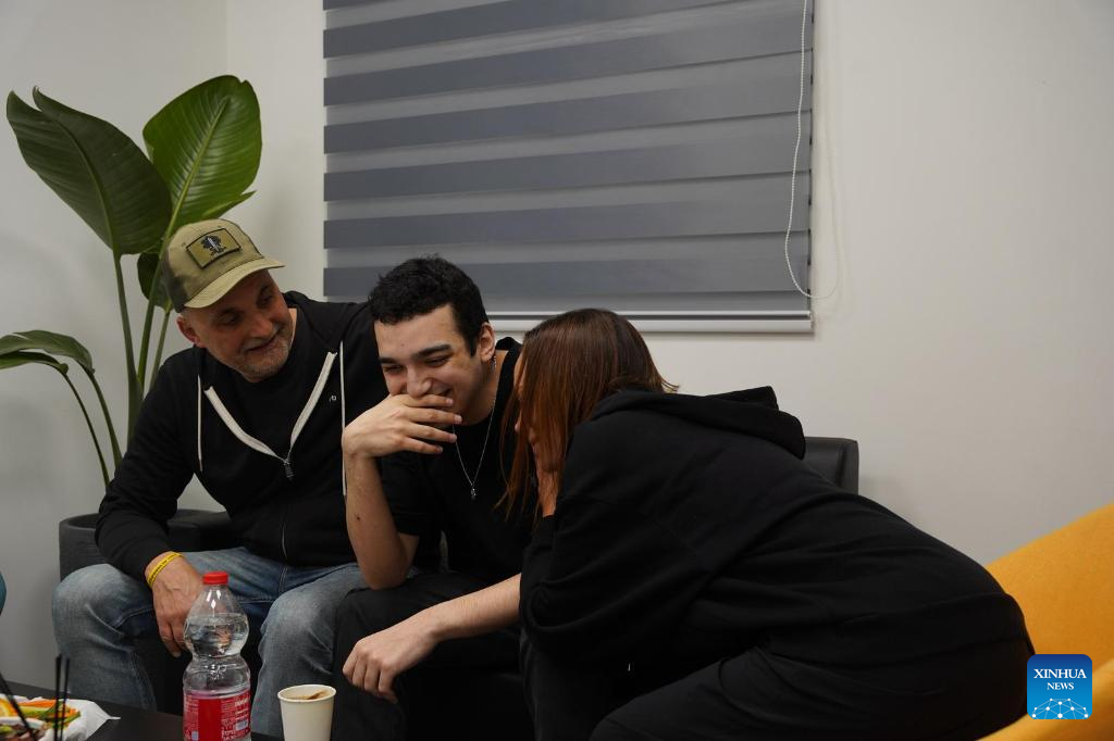 Released hostage Edan Alexander (Rear) arrives at a reception facility in southern Israel, on May 12, 2025. Israeli-American hostage Edan Alexander arrived in Israel on Monday evening after being released from Gaza, where he was held in Hamas captivity for 19 months, Israel's Defense Ministry said in a statement. (Israel Defense Forces/Handout via Xinhua)