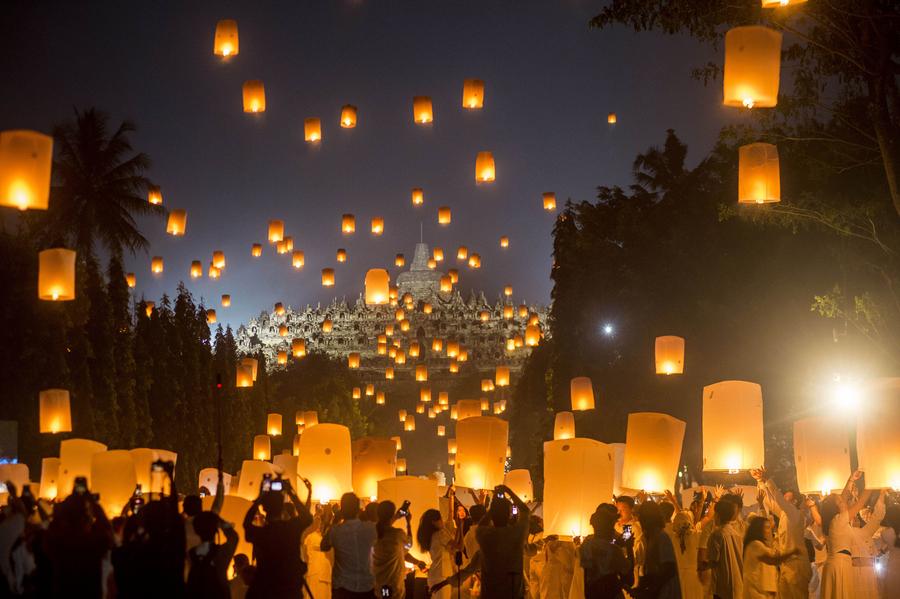 Buddhist monks participate in cultural parade during Vesak Day celebrations at Borobudur Temple in Magelang, Central Java, Indonesia, May 12, 2025. (Photo by Agung Supriyanto/Xinhua)People release prayer lanterns during Vesak Day celebrations at Borobudur Temple in Magelang, Central Java, Indonesia, May 12, 2025. (Photo by Agung Supriyanto/Xinhua)People release prayer lanterns during Vesak Day celebrations at Borobudur Temple in Magelang, Central Java, Indonesia, May 12, 2025. (Photo by Agung Supriyanto/Xinhua)■