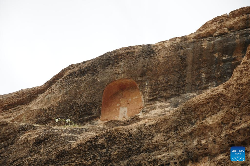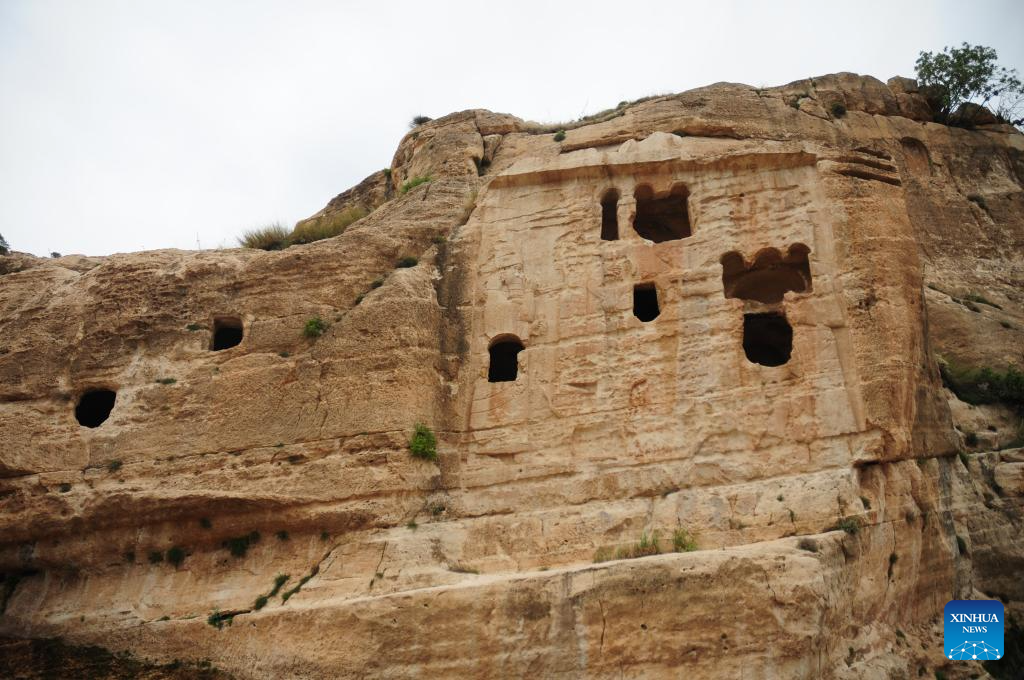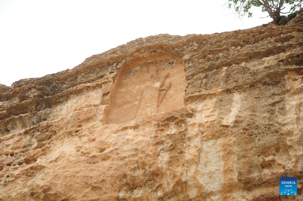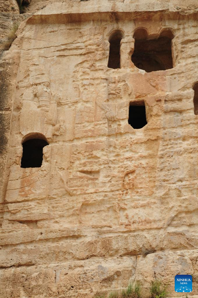 This photo taken on May 12, 2025 shows Assyrian reliefs in the Khinis Valley, northern Iraq. (Xinhua/Duan Minfu)