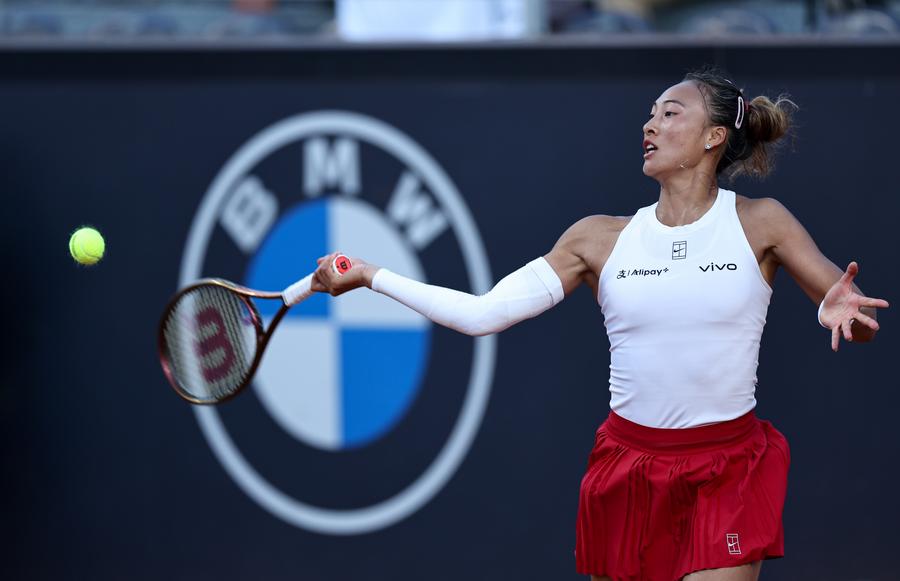 ROME, May 12 (Xinhua) -- China's Zheng Qinwen advanced to the quarterfinals of the WTA Italian Open for the third consecutive year after defeating former US Open champion Bianca Andreescu in straight sets 7-5, 6-1 on Monday.