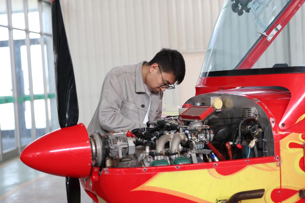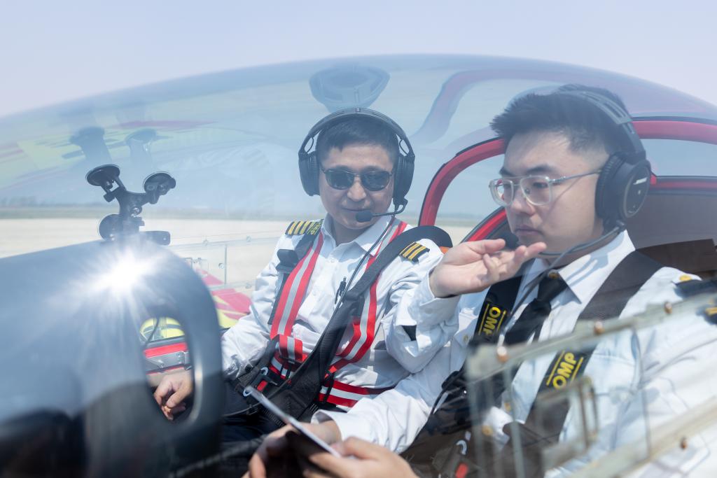 Flight instructor Yang Ming( L) instructs a trainee during a light sport aircraft flight training session at Liaoning Zhongzhi Yisheng Aviation Flight Academy in Faku County, in Shenyang, northeast China's Liaoning Province, April 26, 2025. (Xinhua/Chu Jiayin)A staff member of Liaoning Zhongzhi Yisheng Aviation Flight Academy maintains a light sport aircraft in Faku County, in Shenyang, northeast China's Liaoning Province, April 25, 2025. (Xinhua/Yang Qing)A helicopter for sightseeing flies in Dalian, northeast China's Liaoning Province, April 26, 2025. (Xinhua)An engineer checks inventory of drone components at a workshop of Faku Zhong Jun Yi UAV Technology Co., Ltd. in Faku County, in Shenyang, northeast China's Liaoning Province, April 25, 2025. (Xinhua/Pan Yulong)A lighting drone conducts illumination operations at a forest farm in Haicheng City, northeast China's Liaoning Province, May 6, 2025. (Xinhua)Staff members work on the assembly of an aircraft at Rhyxeon General Aircraft Co., Ltd. in Shenyang, northeast China's Liaoning Province, May 13, 2024. (Xinhua/Li Gang)A trainee takes a practical drone training session at an enterprise in Shenbei New District, in Shenyang, northeast China's Liaoning Province, April 25, 2025.(Xinhua/Chu Jiayin)An engineer of Optimal Aerospace Science and Industry Group Co., Ltd. checks a drone for emergency and firefighting operations in Shenbei New District of Shenyang, northeast China's Liaoning Province, April 25, 2025. (Xinhua/Pan Yulong)