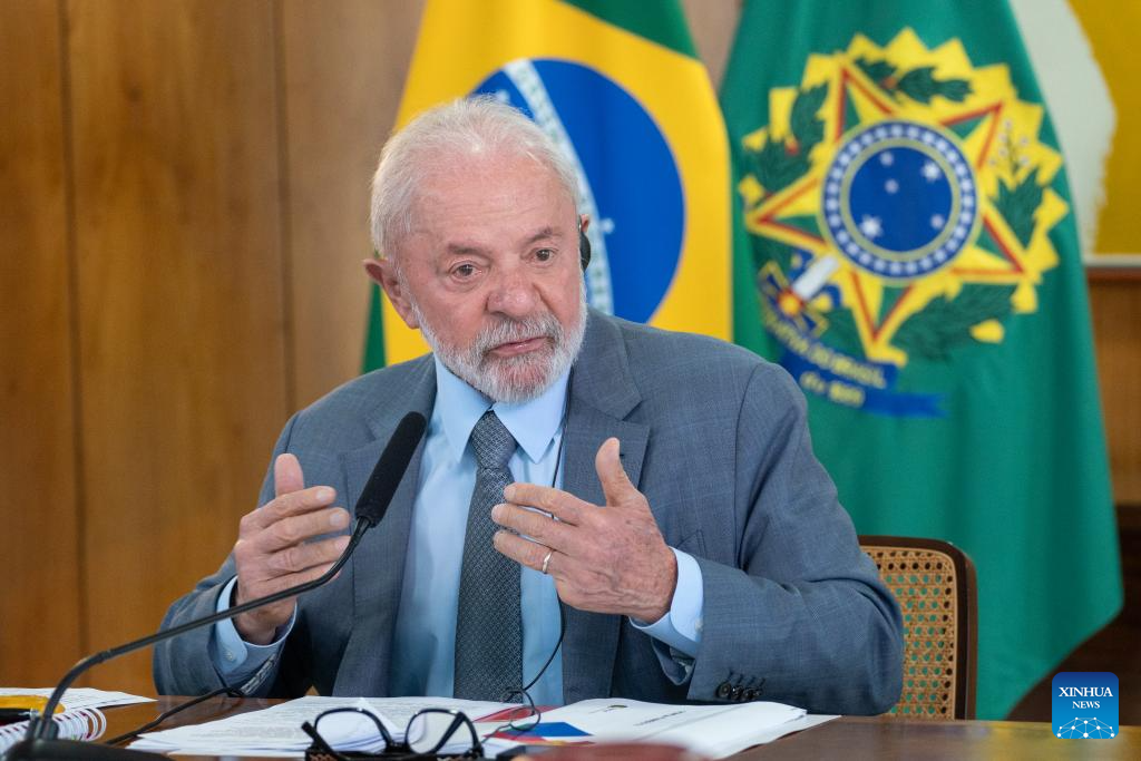 Brazilian President Luiz Inacio Lula da Silva speaks during a collective interview with Chinese media in Brasilia, Brazil, May 5, 2025. (Xinhua/Wang Tiancong)