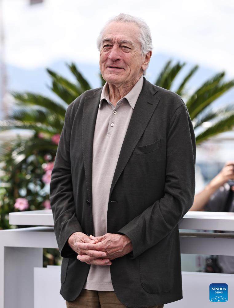 U.S. actor, director and producer Robert De Niro poses during a photocall at the 78th Cannes Film Festival in Cannes, southern France, May 13, 2025. The 78th Cannes Film Festival runs from May 13 to 24, which will see Robert De Niro receive an honorary Palme d'Or. (Xinhua/Gao Jing)