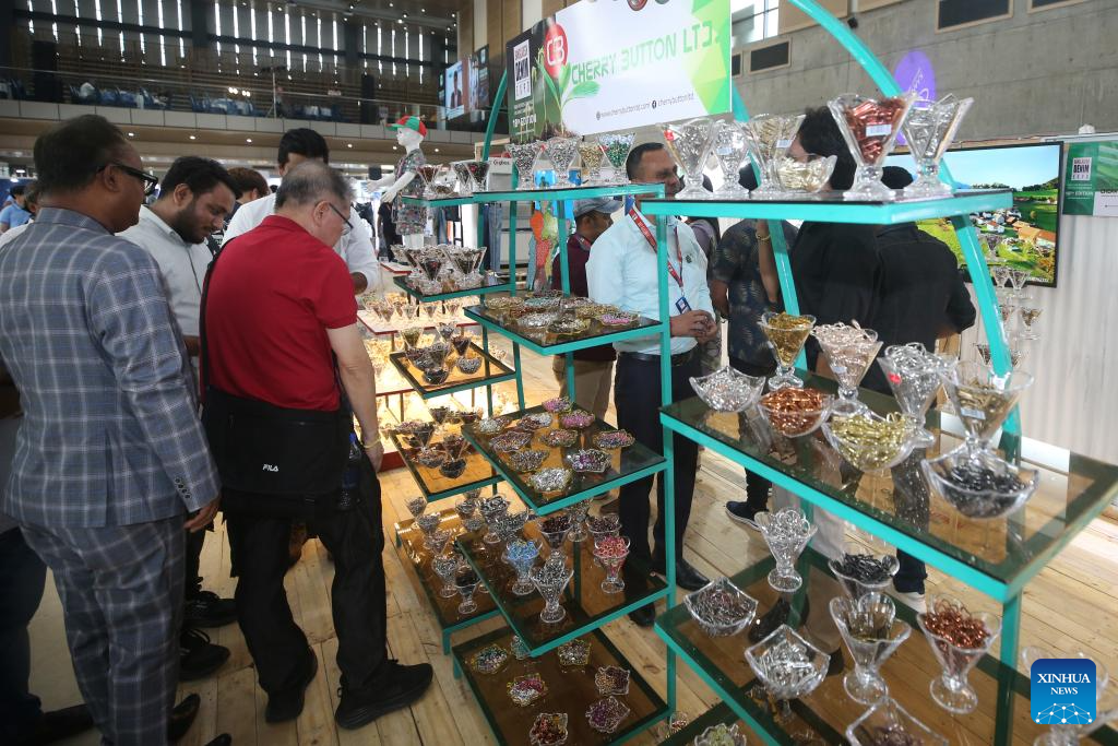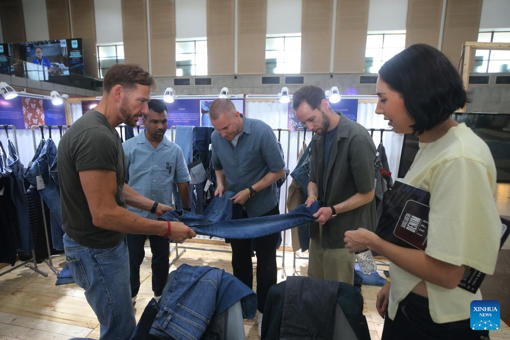 Visitors view sample products during the 18th edition of the Bangladesh Denim Expo, in Dhaka, Bangladesh, on May 13, 2025. The expo concluded on Tuesday. (Photo by Habibur Rahman/Xinhua)