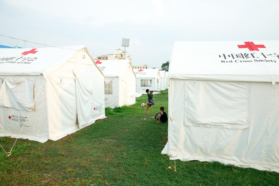 Like many others, they first took shelter on the roadside before moving to a makeshift camp set up on a football field with China-donated tents. China's donation is part of a larger humanitarian relief effort that brought in 13 batches of food, medicine, prefabricated shelters, fuel, and sanitation supplies.