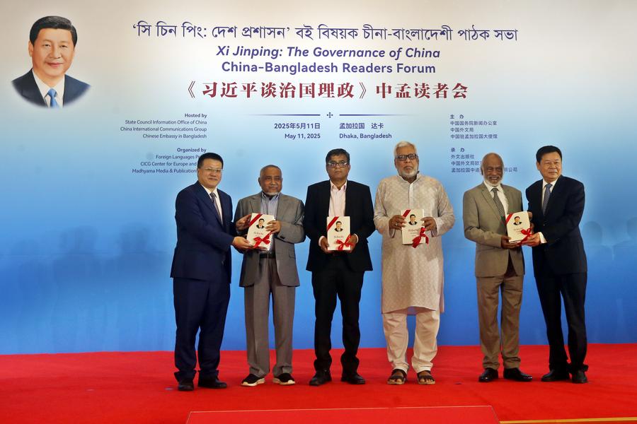 During the event, Chinese representatives presented Bangladeshi counterparts with Bengali and English editions of "Xi Jinping: The Governance of China." Experts and scholars from both countries also held discussions on topics including state governance, reform and development, poverty alleviation, high-quality Belt and Road cooperation, cultural and people-to-people exchanges, and China-Bangladesh friendship.