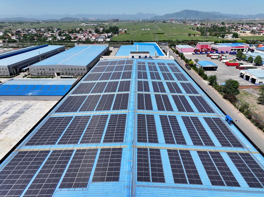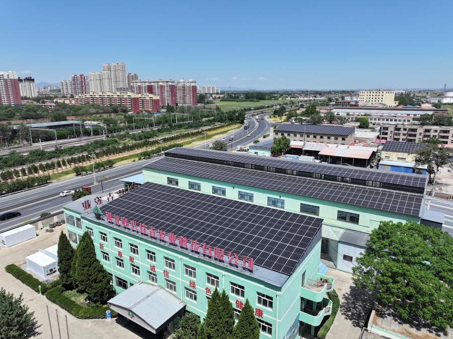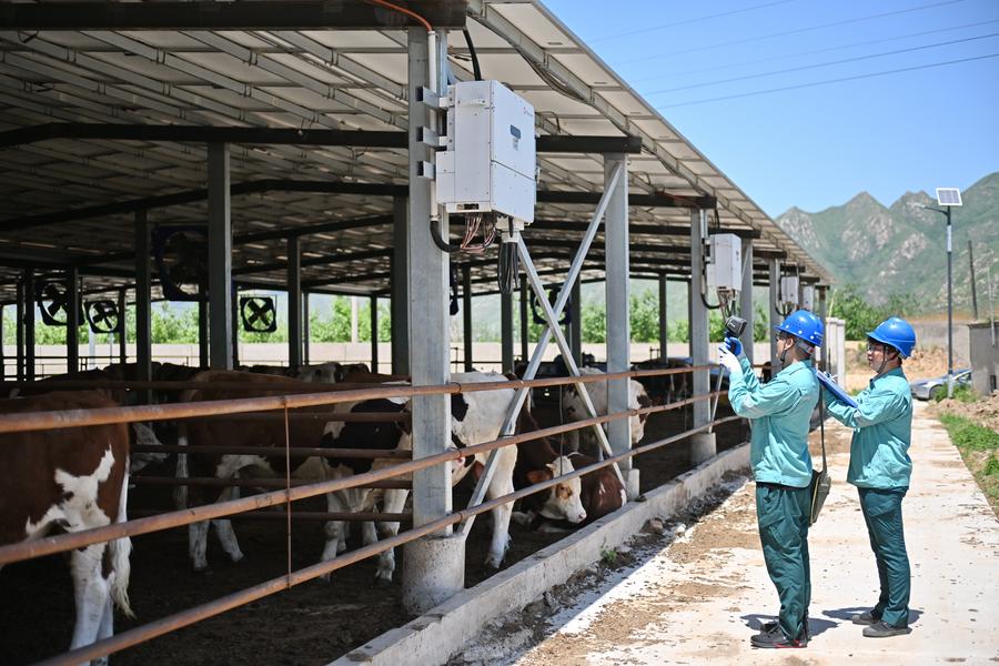 Staff members of a local subordinate of the State Grid check power consumption of a modern agriculture company in Yuanshi County, north China's Hebei Province, May 14, 2025. (Xinhua/Mu Yu)Staff members of a local subordinate of the State Grid examine photovoltaic devices at a cattle farming company in Yuanshi County, north China's Hebei Province, May 14, 2025. (Xinhua/Mu Yu)An aerial drone photo taken on May 14, 2025 shows rooftop photovoltaic devices at a cattle farming company in Yuanshi County, north China's Hebei Province. (Xinhua/Mu Yu)An aerial drone photo taken on May 14, 2025 shows rooftop photovoltaic devices at a modern agriculture company in Yuanshi County, north China's Hebei Province. (Xinhua/Mu Yu)An aerial drone photo taken on May 14, 2025 shows rooftop photovoltaic devices at a technology company in Yuanshi County, north China's Hebei Province. (Xinhua/Mu Yu)■