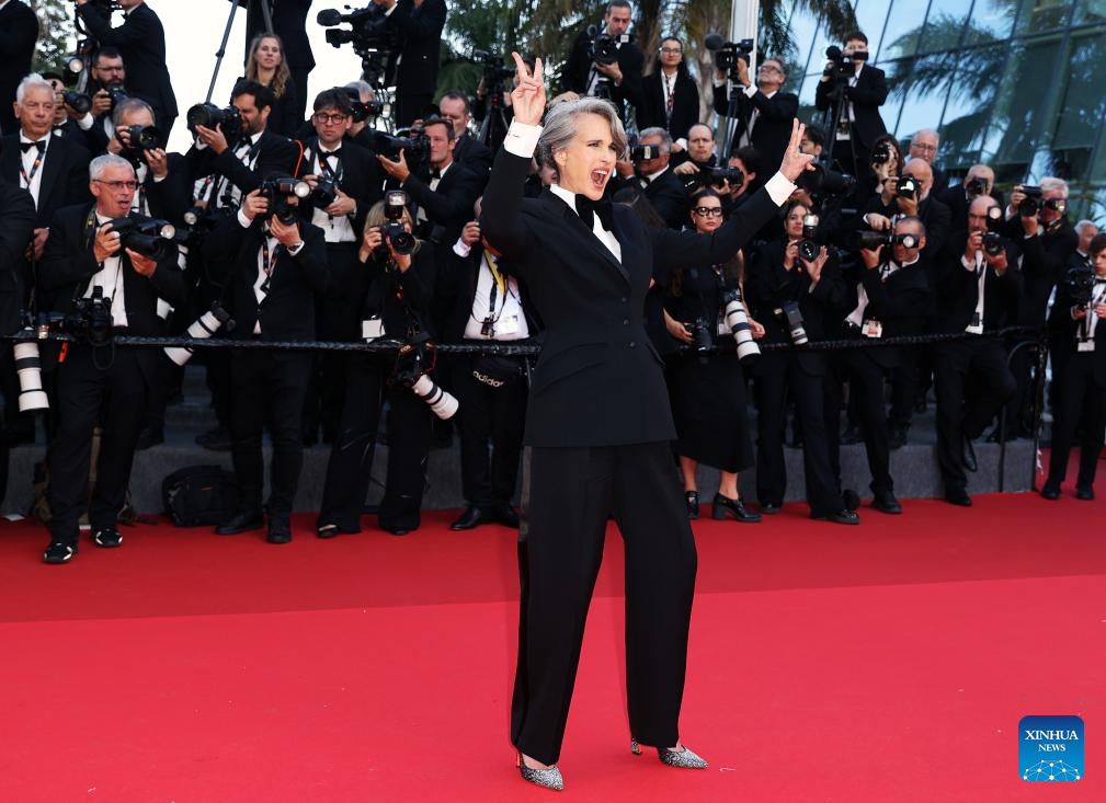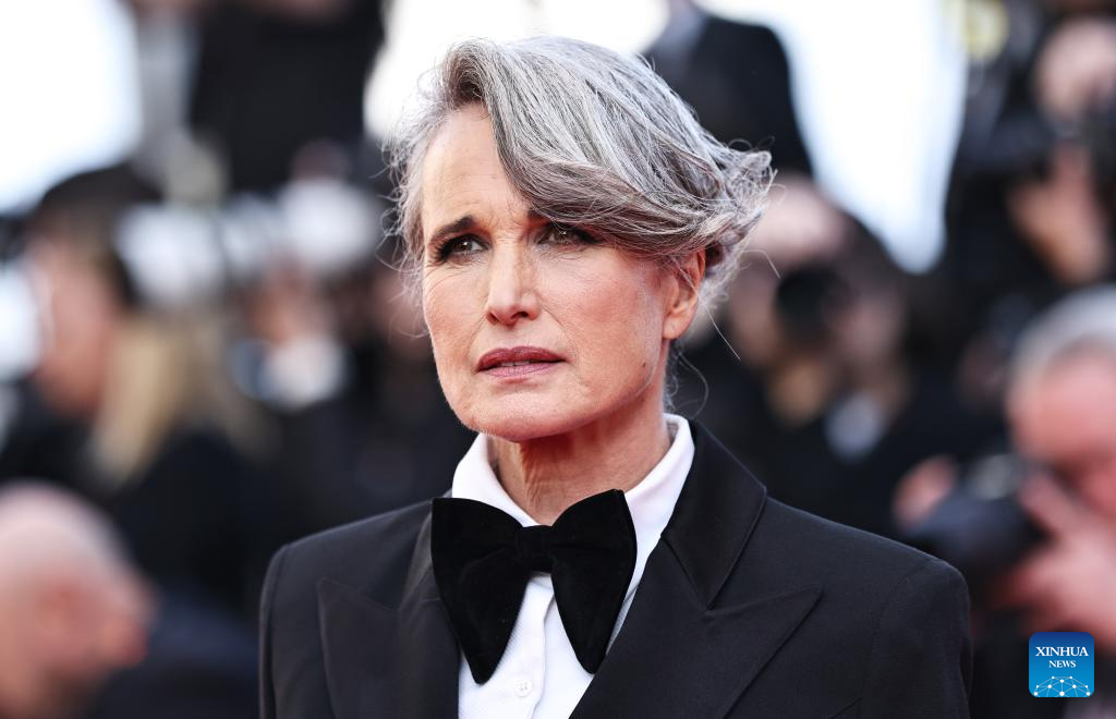 U.S. actress Andie Macdowell arrives on the red carpet for the world premiere of the film "Mission: Impossible - The Final Reckoning" at the 78th edition of the Cannes Film Festival in Cannes, southern France, on May 14, 2025. (Xinhua/Gao Jing)