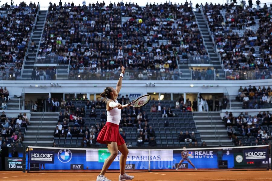 ROME, May 14 (Xinhua) -- China's Zheng Qinwen claimed a straight-sets victory over top seed Aryna Sabalenka in the quarterfinals of the WTA Italian Open on Wednesday, reaching the semifinals of a WTA 1000 event for the third time in her career.