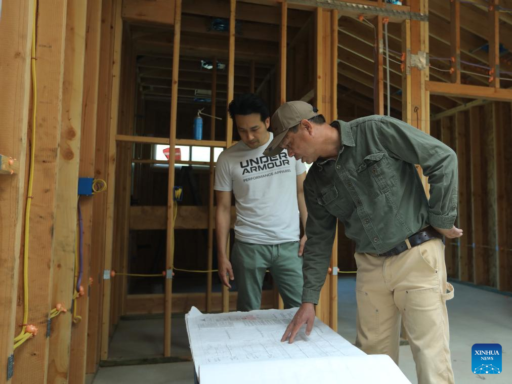 David Truong, manager of DuiDui Construction, inspects a construction site in Temple City, Los Angeles County, California, the United States, on April 30, 2025. (Photo by Qiu Chen/Xinhua)