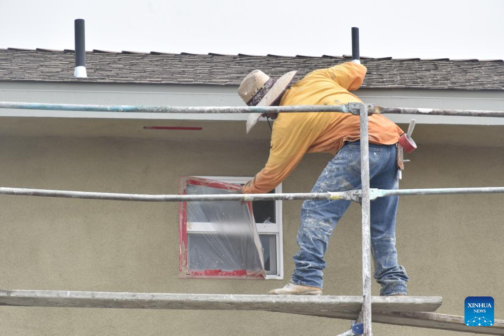 A construction worker performs his task in Monrovia, Los Angeles County, California, the United States, on May 7, 2025. (Xinhua/Gao Shan)