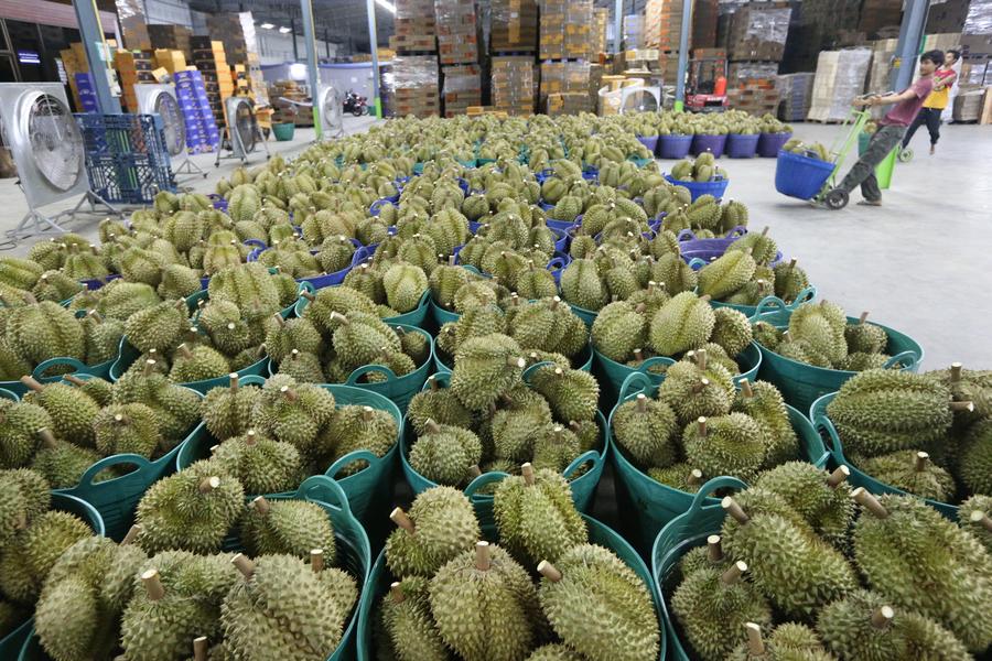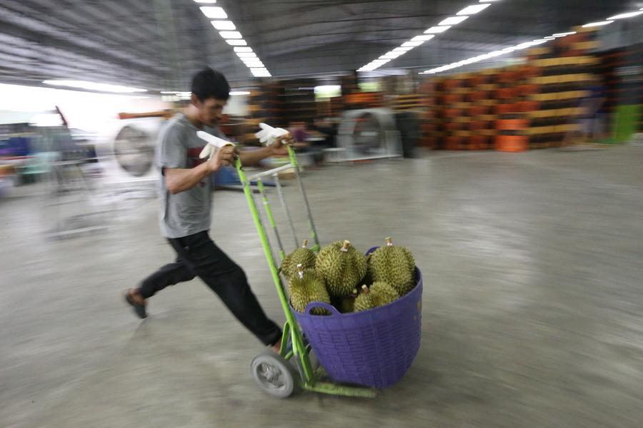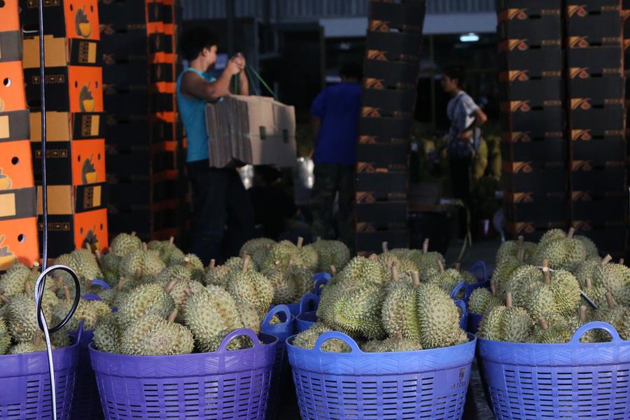 Workers unload durians at Long durian center in Chanthaburi, Thailand, May 13, 2025. (Xinhua/Rachen Sageamsak)A worker shows a durian at Long durian center in Chanthaburi, Thailand, May 13, 2025. (Xinhua/Rachen Sageamsak)Durians are seen at Long durian center in Chanthaburi, Thailand, May 13, 2025. (Xinhua/Rachen Sageamsak)Durians are seen at Long durian center in Chanthaburi, Thailand, May 13, 2025. (Xinhua/Rachen Sageamsak)Durians are seen at Long durian center in Chanthaburi, Thailand, May 13, 2025. (Xinhua/Rachen Sageamsak)Durians are seen at Long durian center in Chanthaburi, Thailand, May 13, 2025. (Xinhua/Rachen Sageamsak)A worker transfers durians at Long durian center in Chanthaburi, Thailand, May 13, 2025. (Xinhua/Rachen Sageamsak)■
