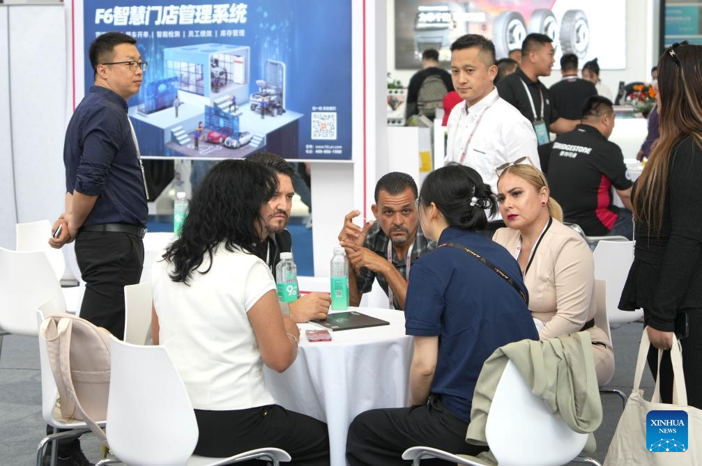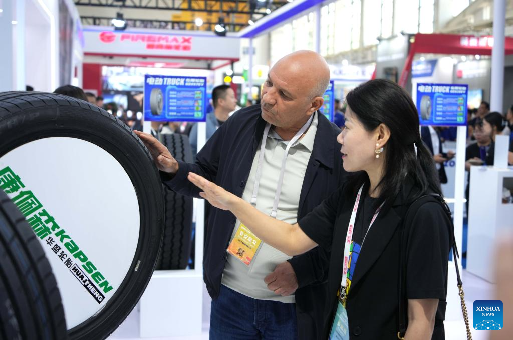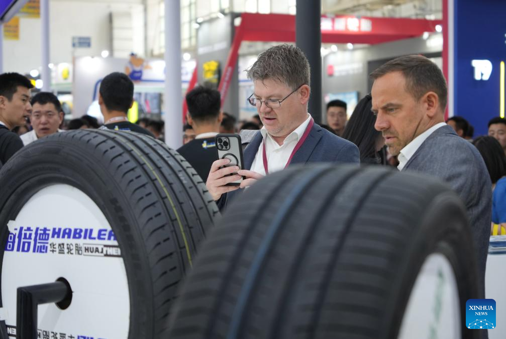 People visit the 15th China (Guangrao) International Rubber Tire & Auto Accessory Exhibition in Dongying City, east China's Shandong Province, May 15, 2025.