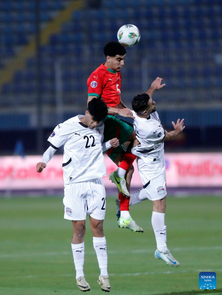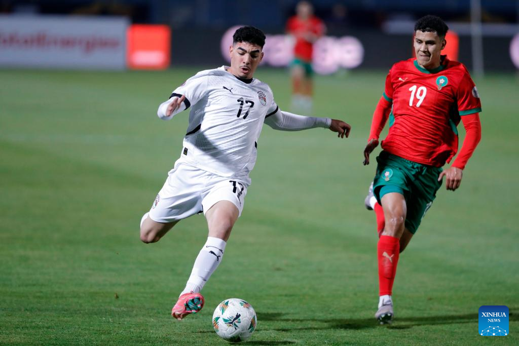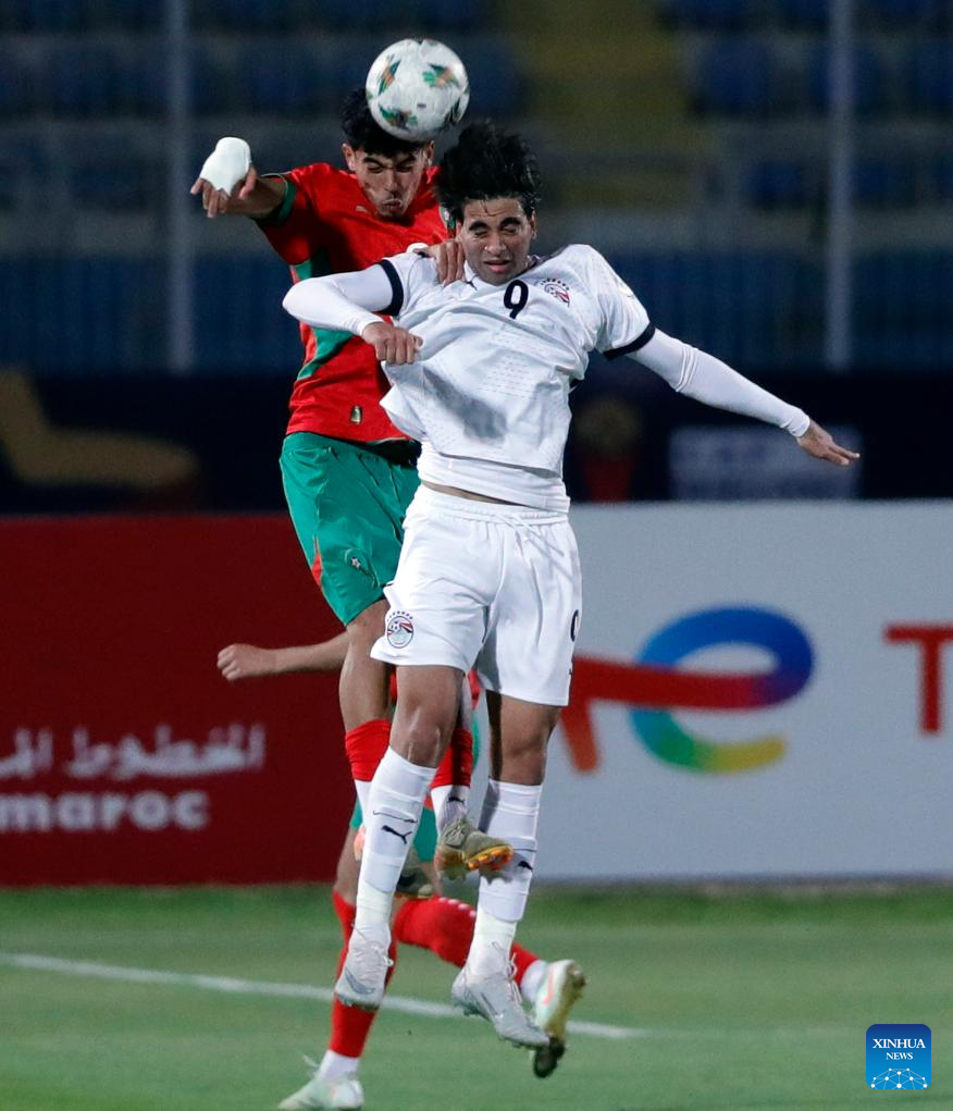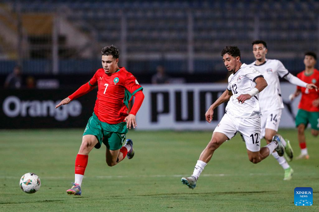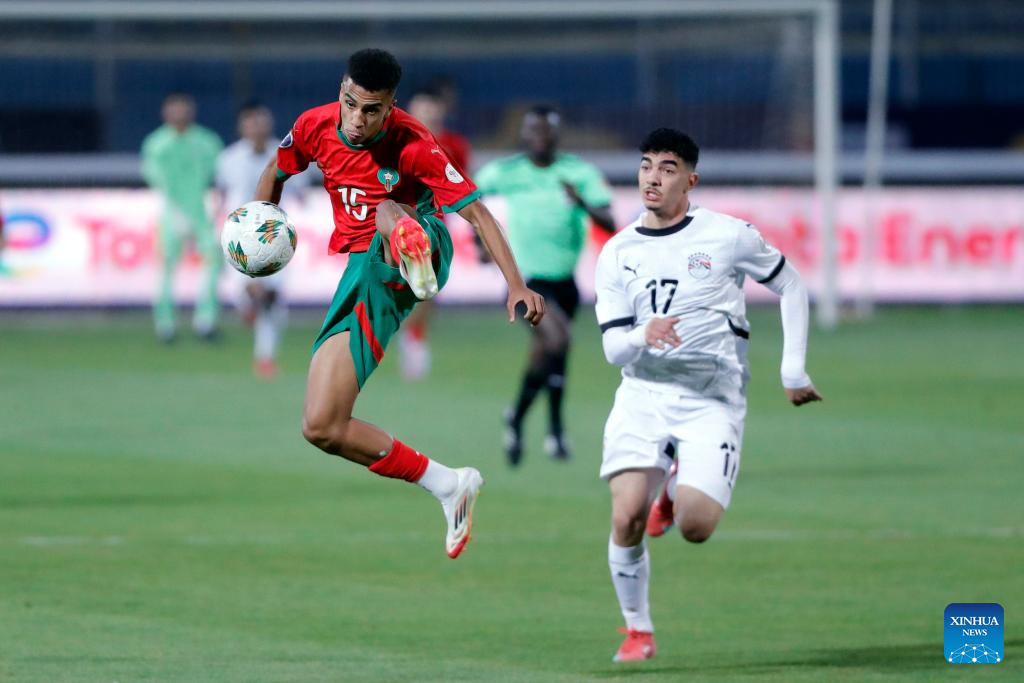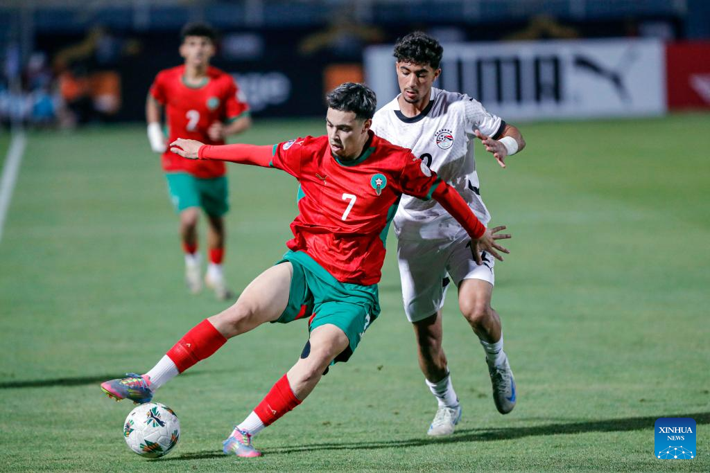 Othmane Maamma (L) of Morocco competes during the CAF U20 Africa Cup of Nations semi-final match between Egypt and Morocco in Cairo, Egypt, on May 15, 2025. (Xinhua/Ahmed Gomaa)
