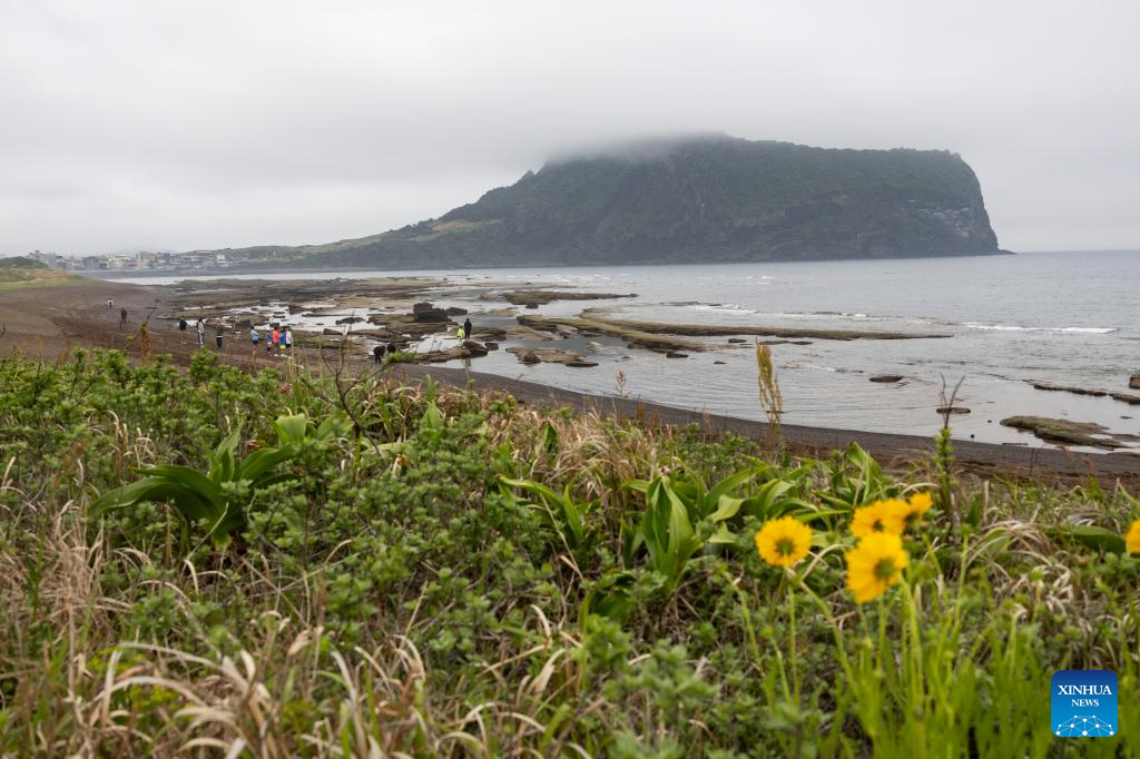 This photo shows a view of the Seongsan Ilchulbong peak on Jeju Island, South Korea, May 16, 2025. (Photo by Jun Hyosang/Xinhua)