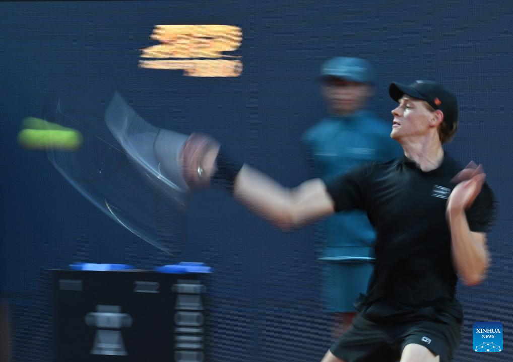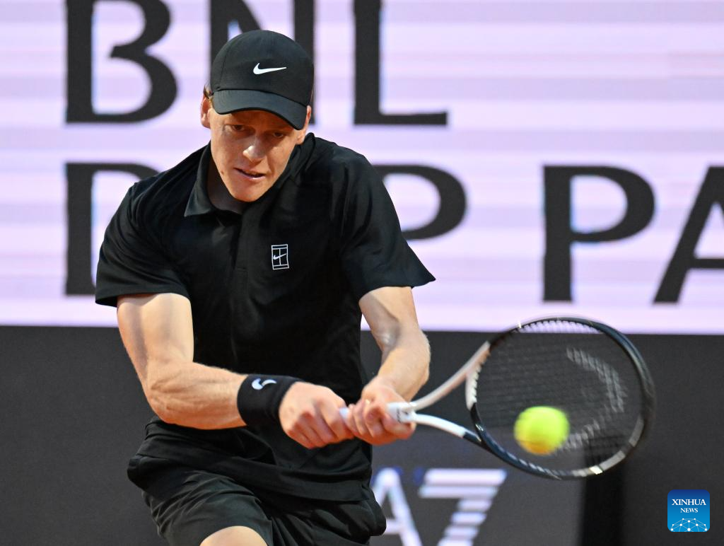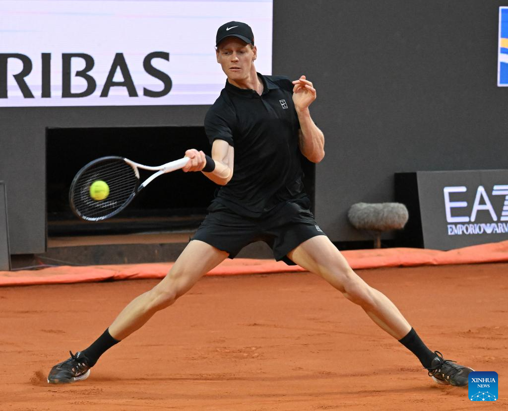 Jannik Sinner returns a shot during the men's singles quarter final match between Jannik Sinner of Italy and Casper Ruud of Norway at the ATP Italian Open in Rome, Italy, May 15, 2025. (Photo by Alberto Lingria/Xinhua)