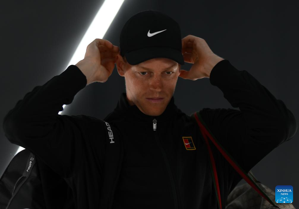 Jannik Sinner reacts before the men's singles quarter final match between Jannik Sinner of Italy and Casper Ruud of Norway at the ATP Italian Open in Rome, Italy, May 15, 2025. (Photo by Alberto Lingria/Xinhua)