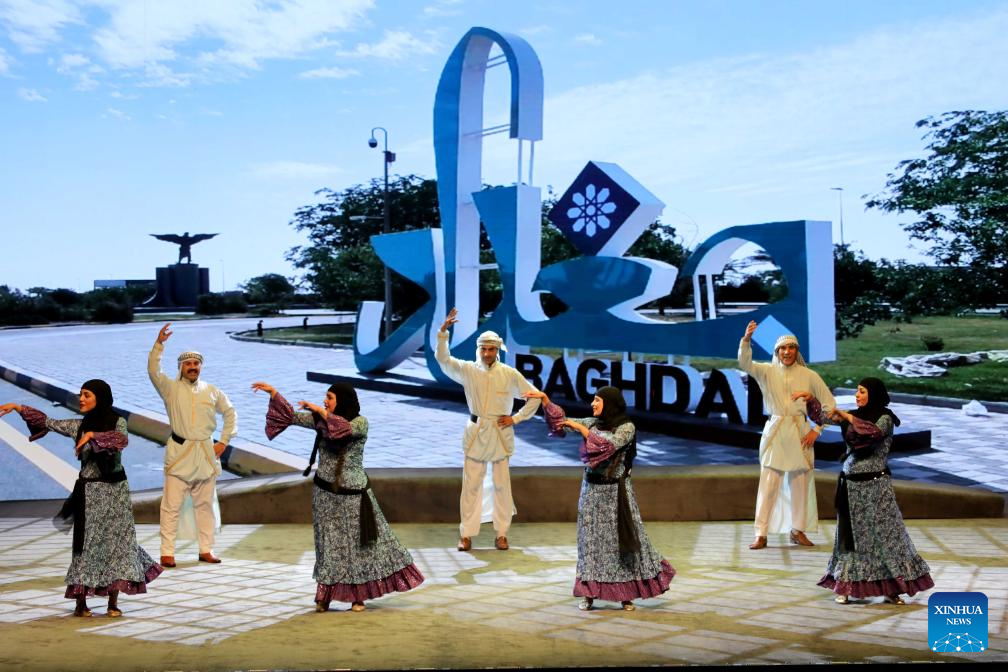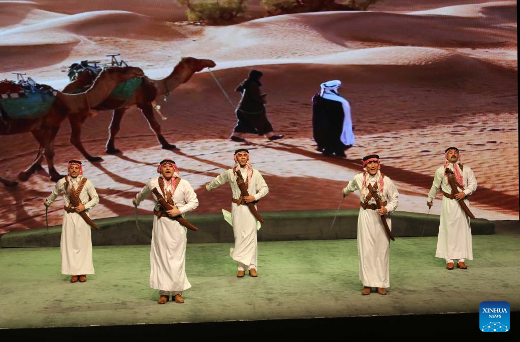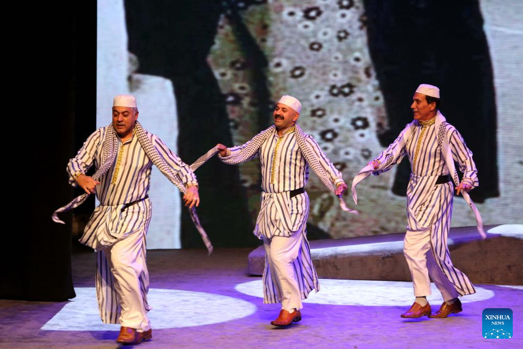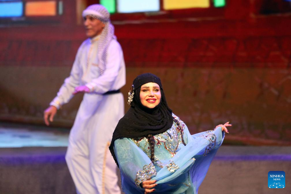 A folk arts troupe under Iraq's Ministry of Culture, Tourism and Antiquities stages a performance at Al-Mansour Theater in Baghdad, Iraq, May 15, 2025. (Xinhua/Khalil Dawood)